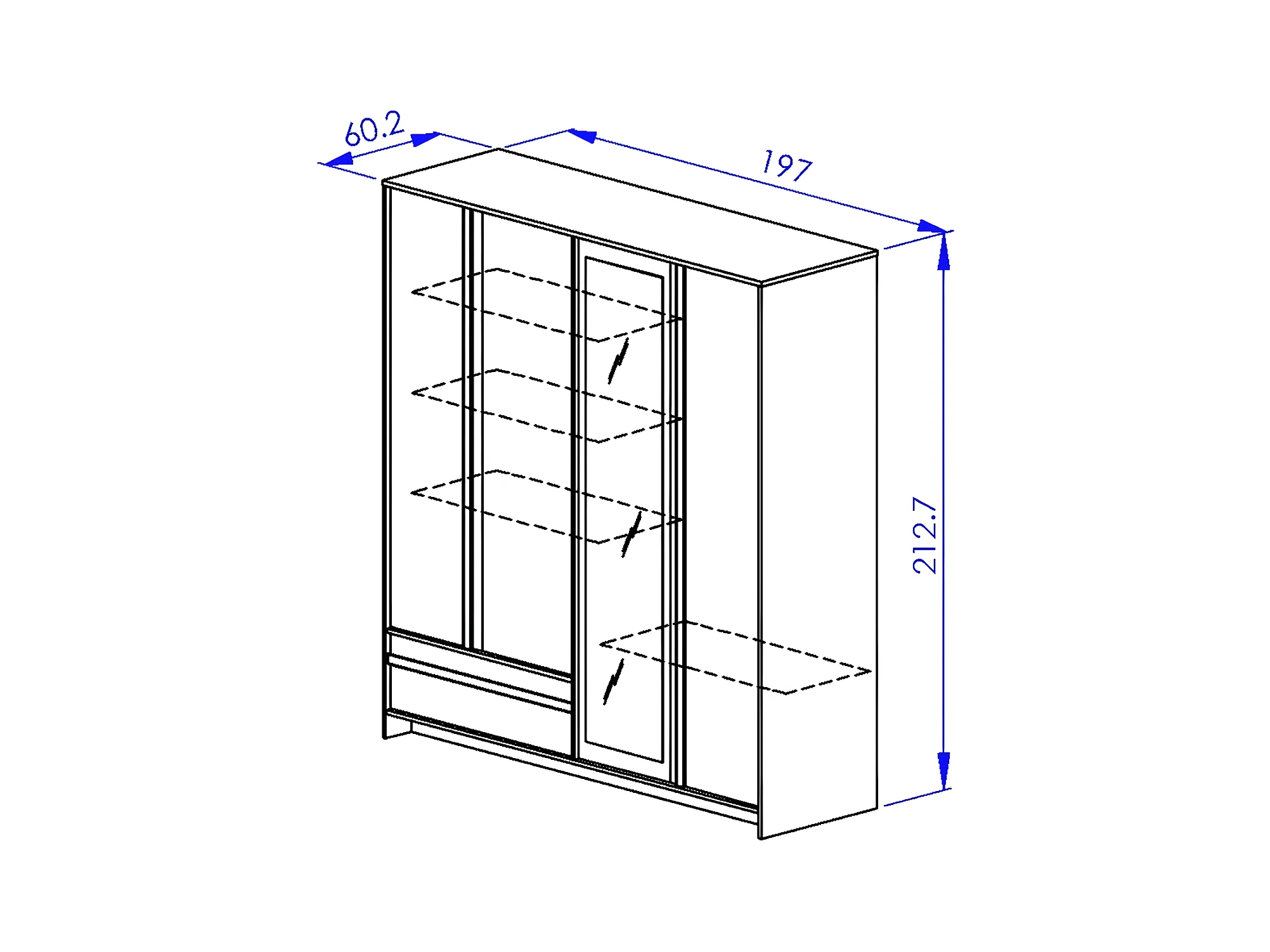 Armoire 4 portes miroir et 4 tiroirs - L179 cm