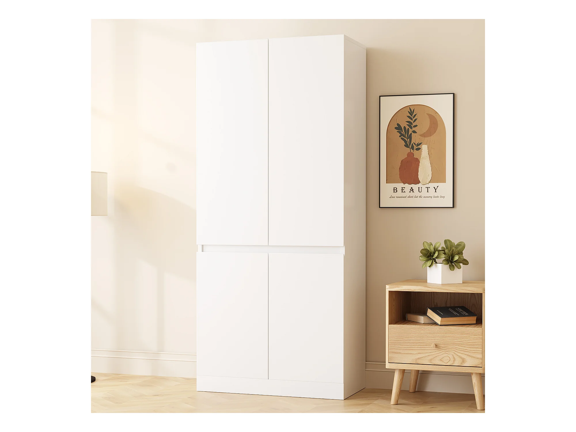 Armoire 70x40x170 cm - avec 4 portes - avec compartiments de rangement - Blanc