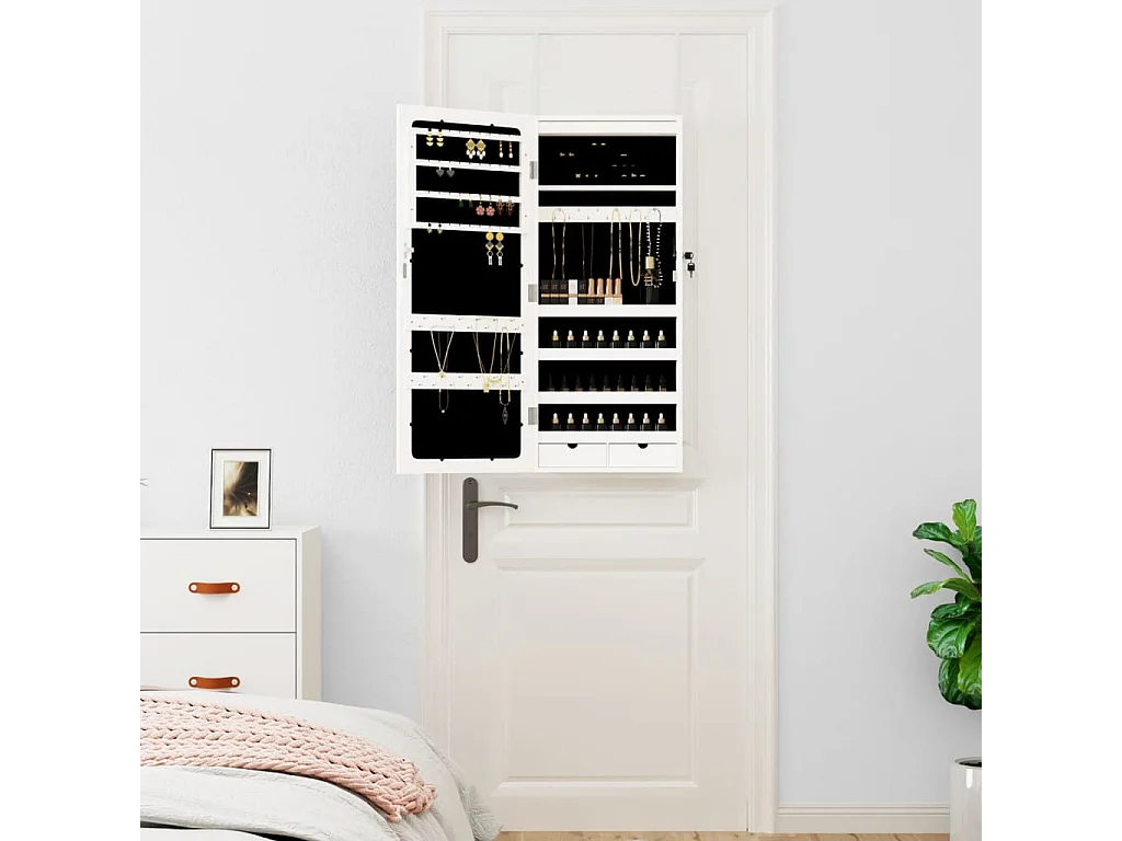Armoire à bijoux avec miroir et éclairage LED mural blanc OFR35878 BonneVie Meuble