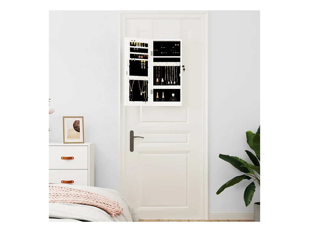 Armoire à bijoux avec miroir et éclairage LED mural blanc OFR35878 BonneVie Meuble