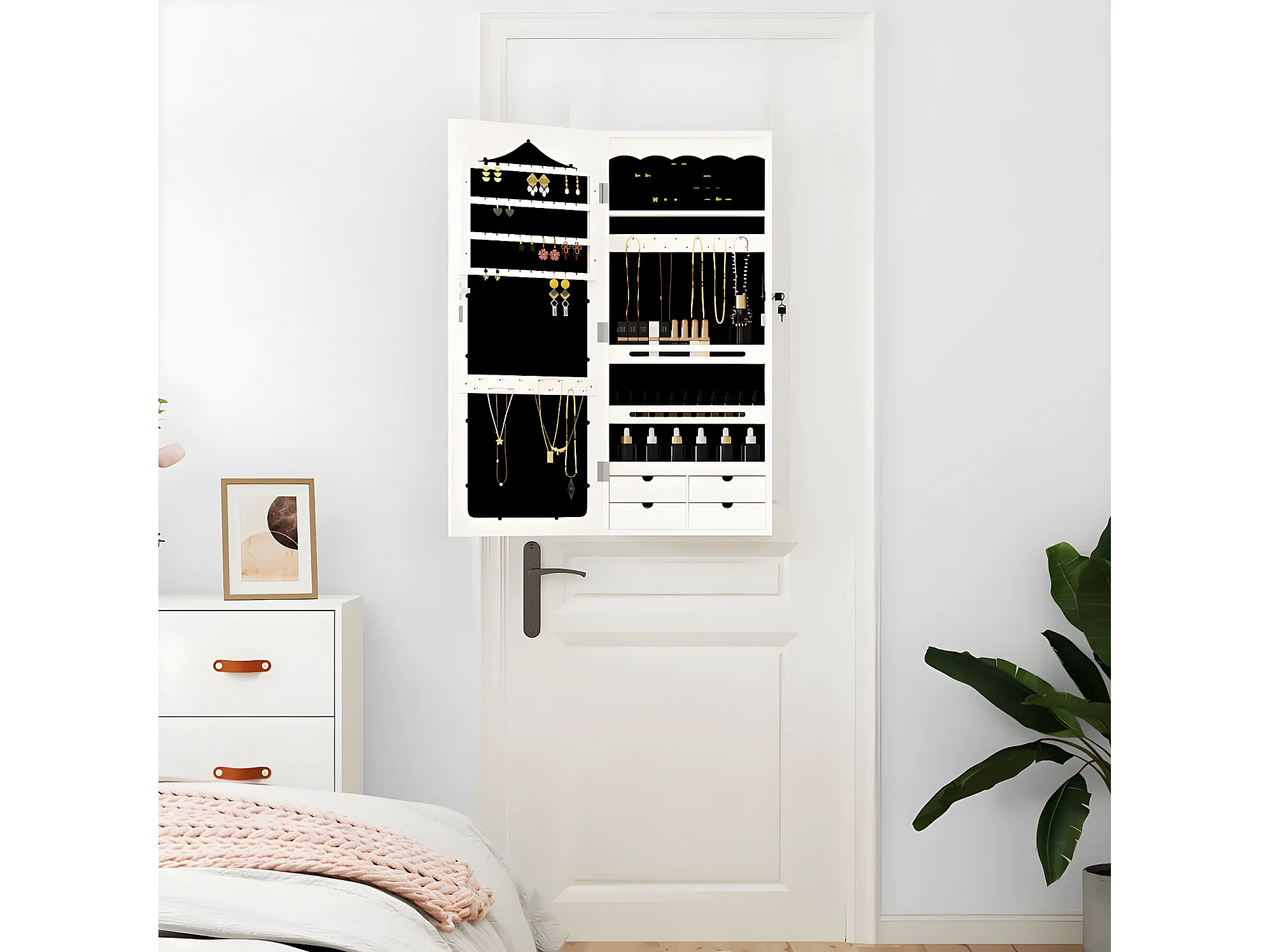 Armoire à bijoux avec miroir et éclairage LED mural blanc OFR35878 BonneVie Meuble