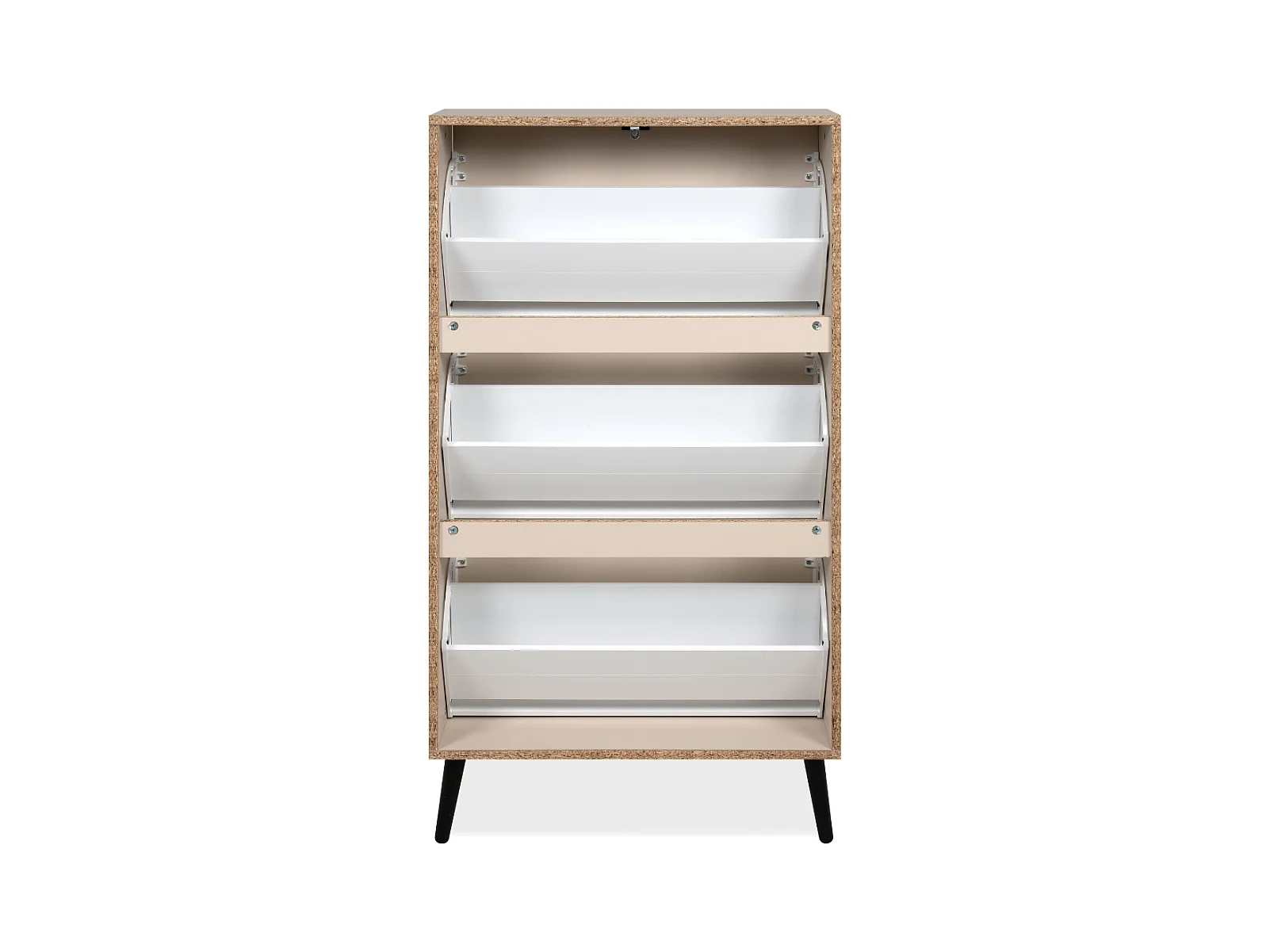 Meuble à chaussures naturel avec 3 portes basculantes et poignées noires - pour entrée et couloir