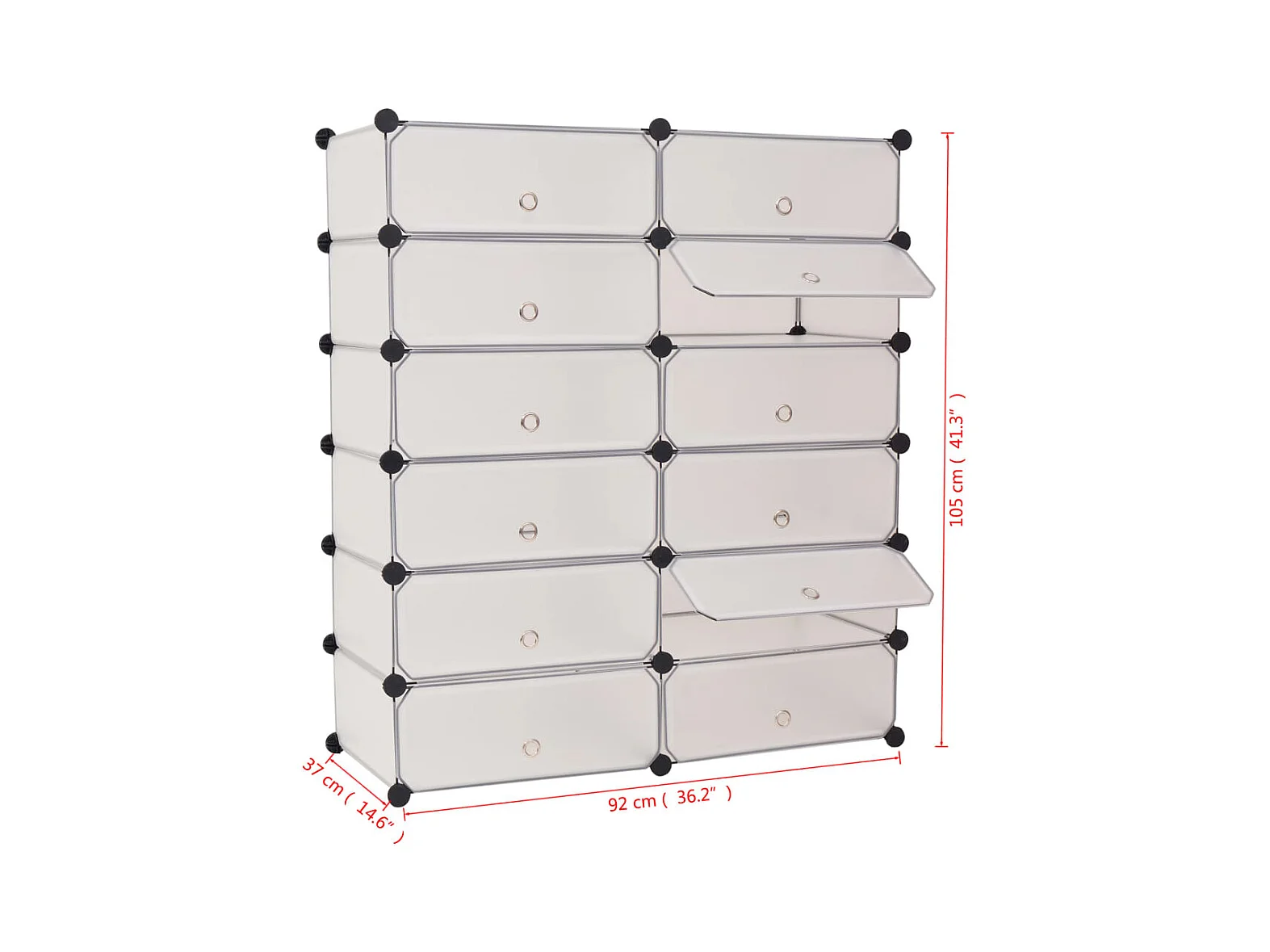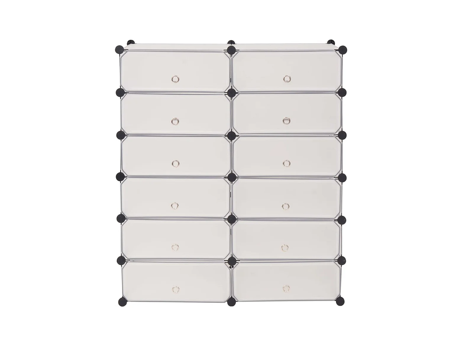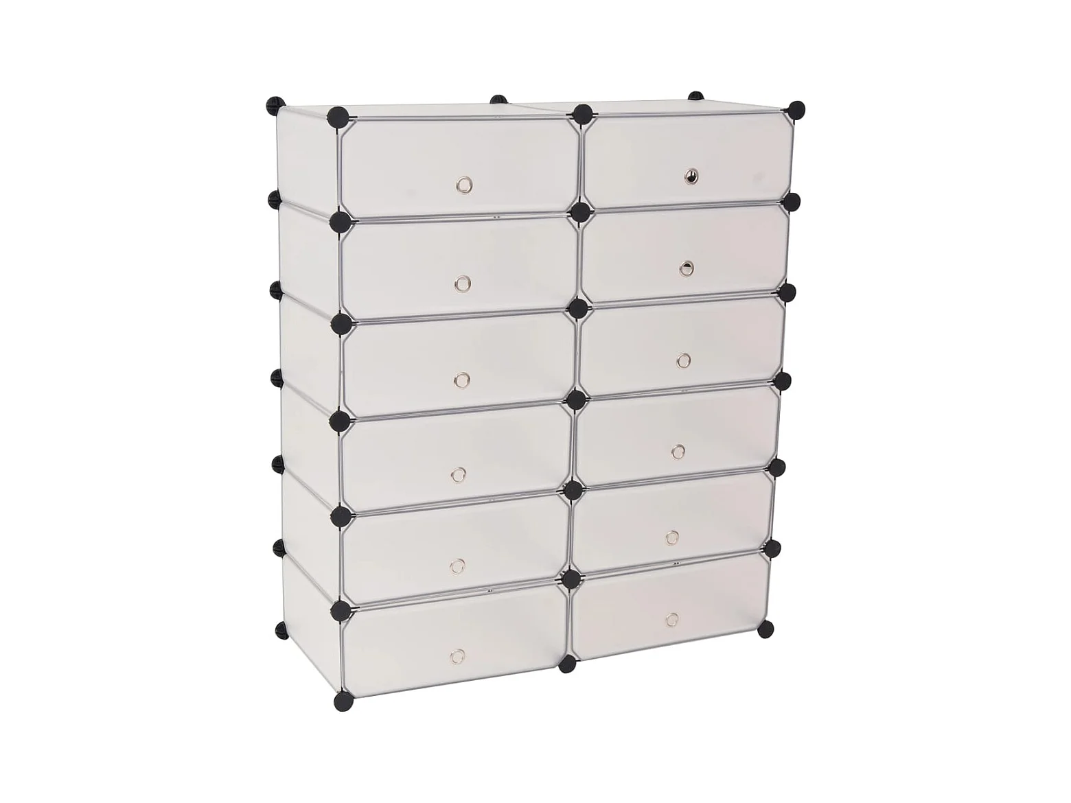 Meuble à chaussures moderne avec portes doubles, étagères réglables et tiroirs, MDF, blanc (75x37x110 cm)