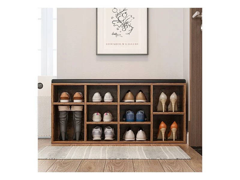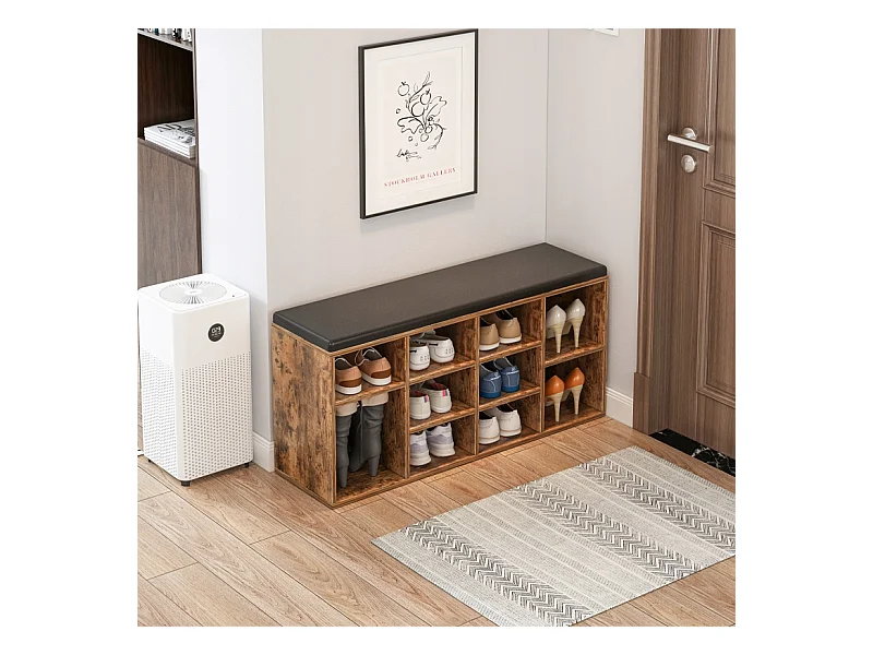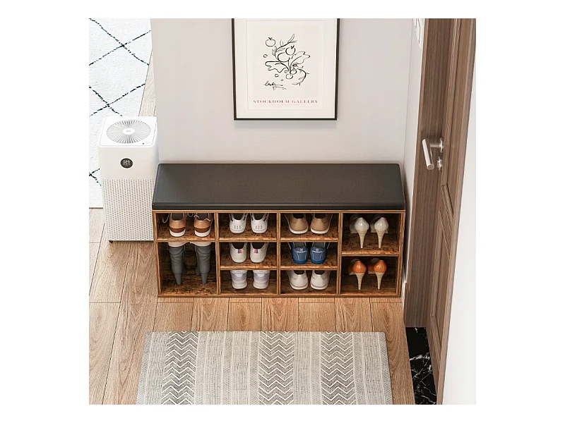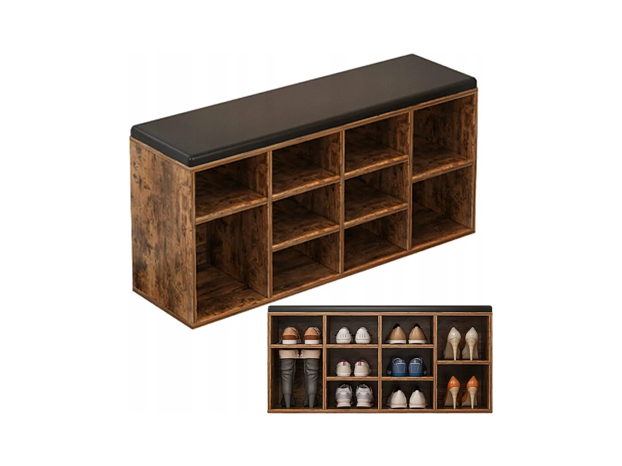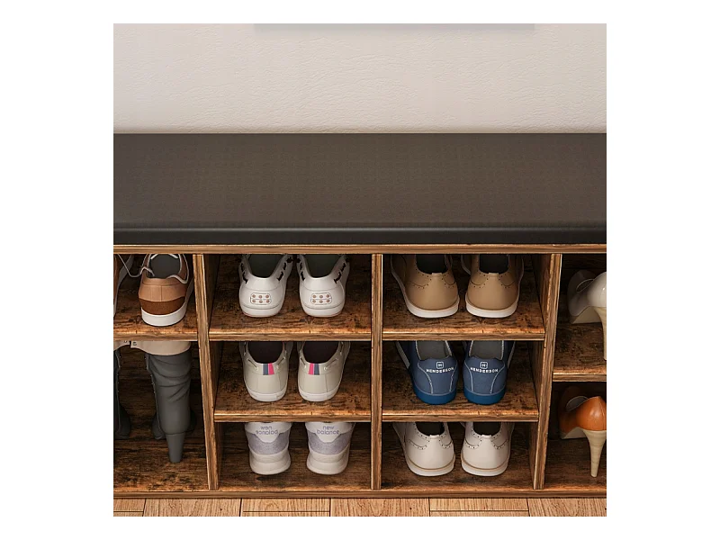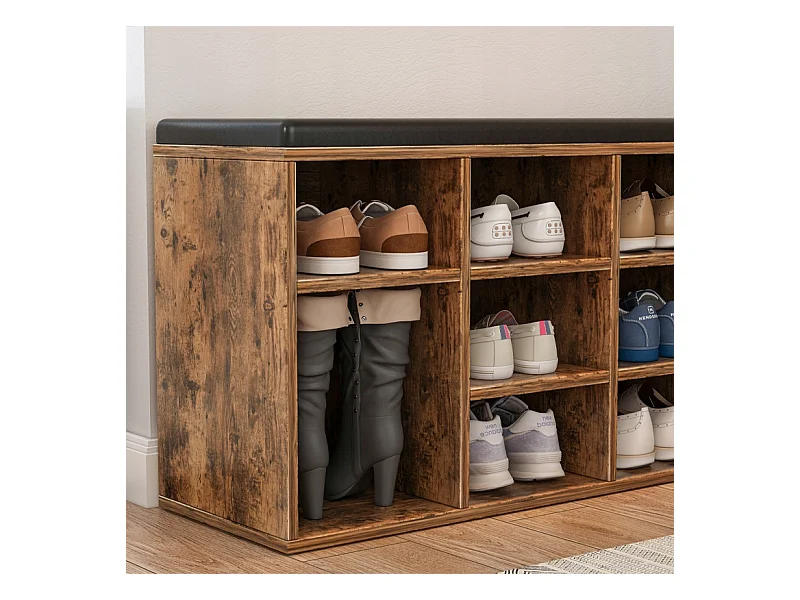 ARMOIRE À CHAUSSURES AVEC SIÈGE BANQUETTE POUR ENTRÉE BRUN RUSTIQUE LOFT