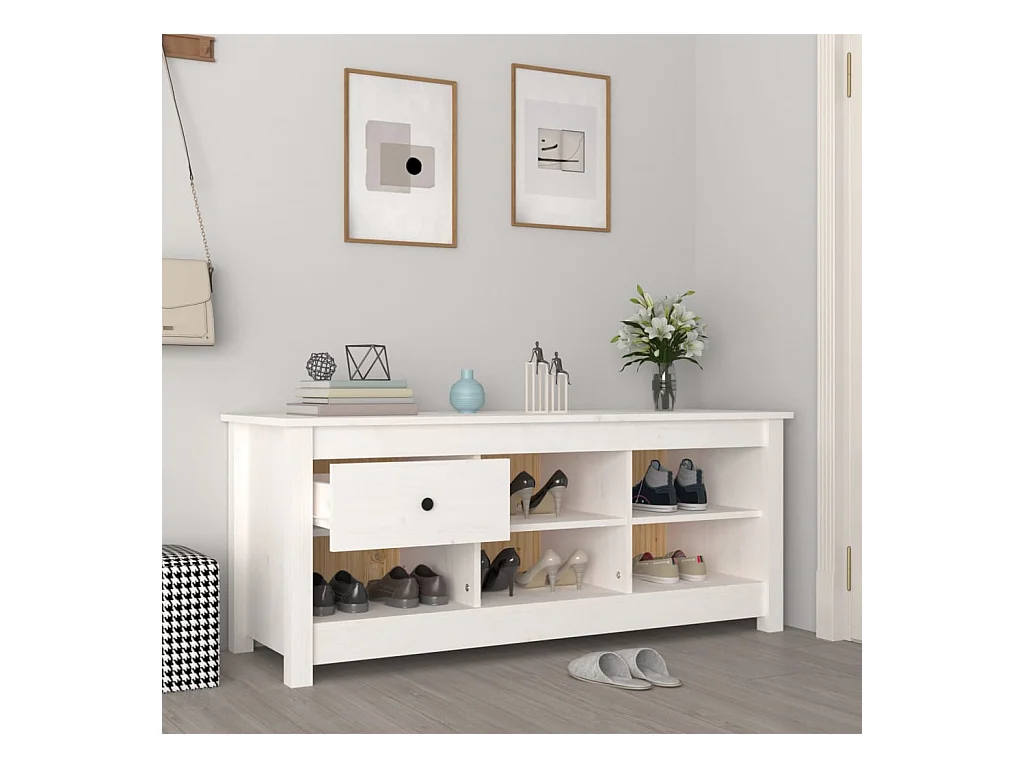 Banc à chaussures Blanc 110x38x45,5 cm Bois de pin massif
