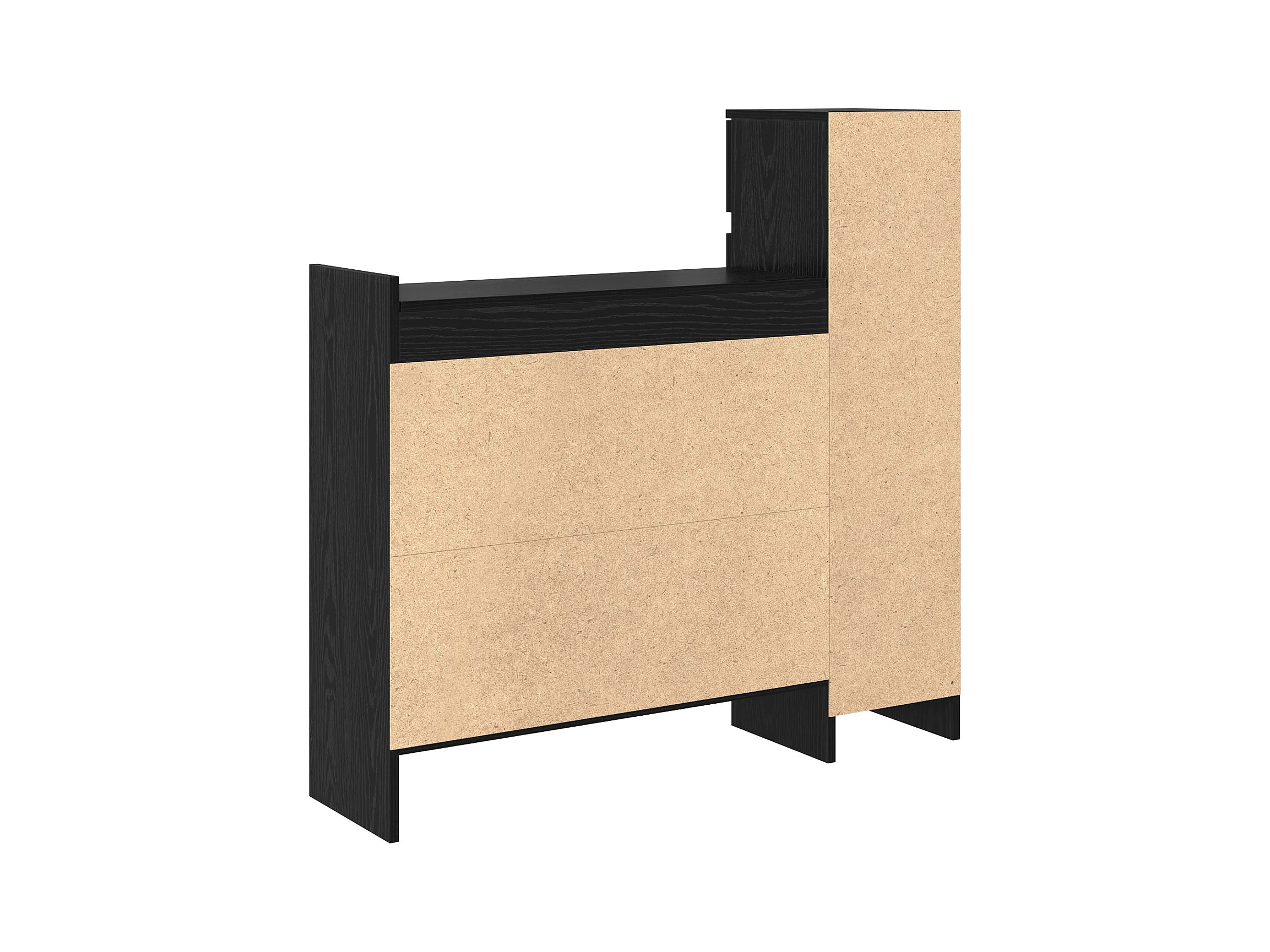 Meuble à chaussures avec tabouret à langer, 3 étagères à rabat, espace de rangement ouvert, MDF, coloris noir et bois (100x25x100 cm)