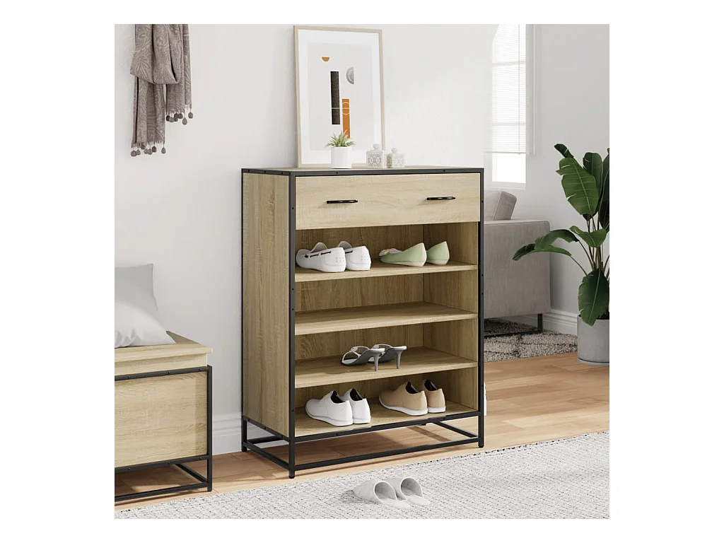 Armoire à chaussures chêne sonoma bois d'ingénierie et métal