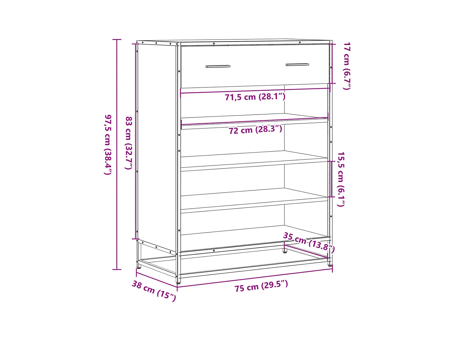 Meuble à chaussures chêne fumé bois d'ingénierie et métal