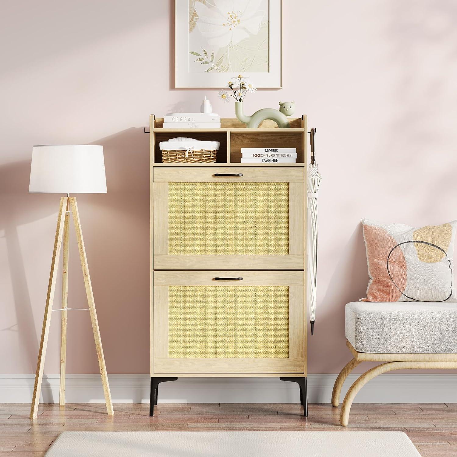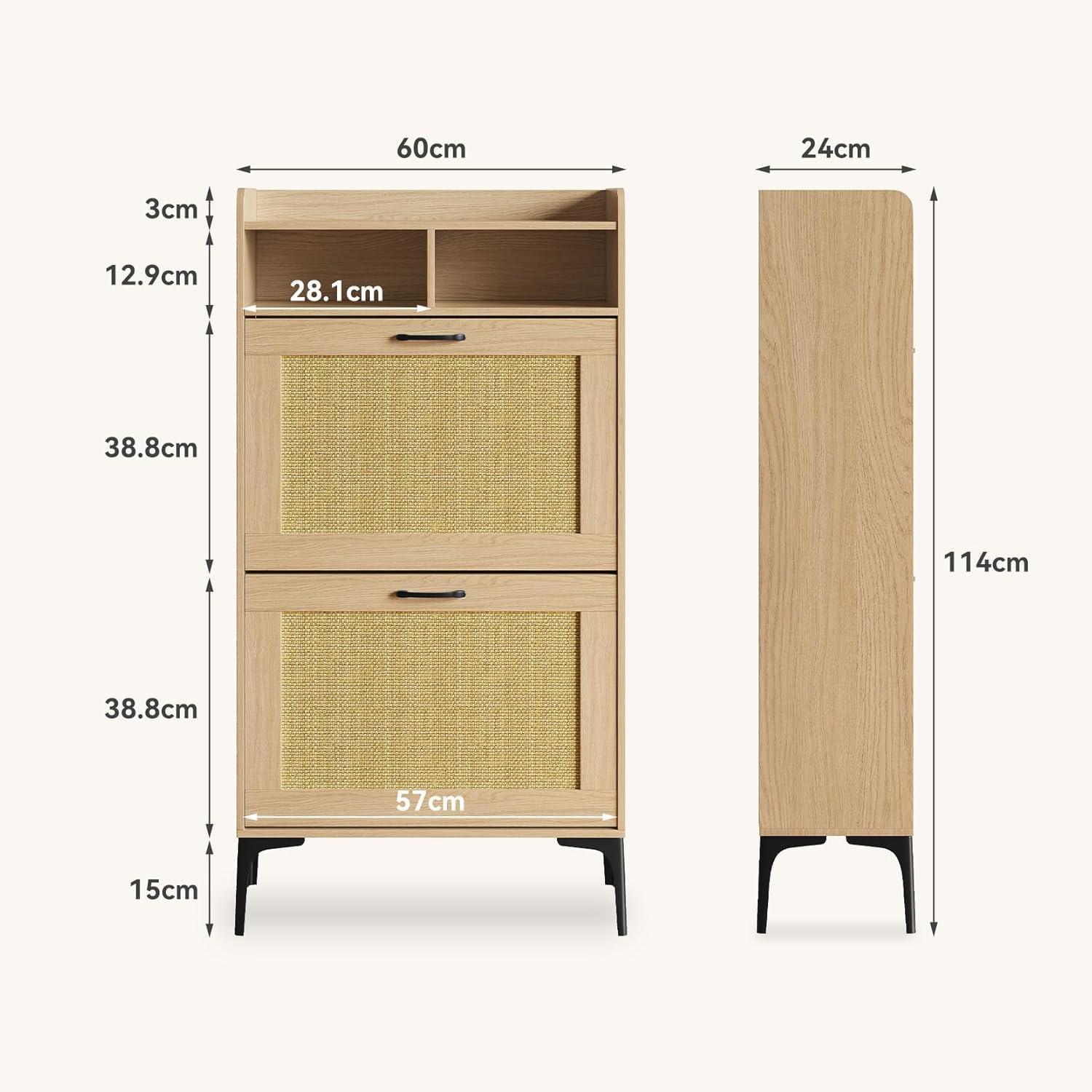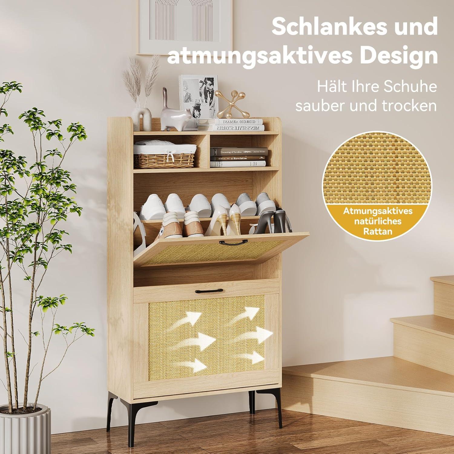 Armoire à chaussures Dripex avec décoration en rotin, dotée de 2 tiroirs à bascule et de pieds en métal, idéale pour entrée, couloir, salon, 24 x 60 x 114