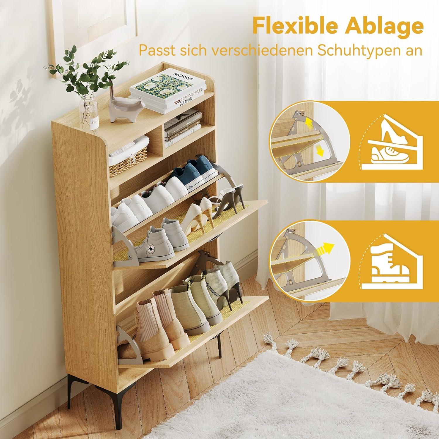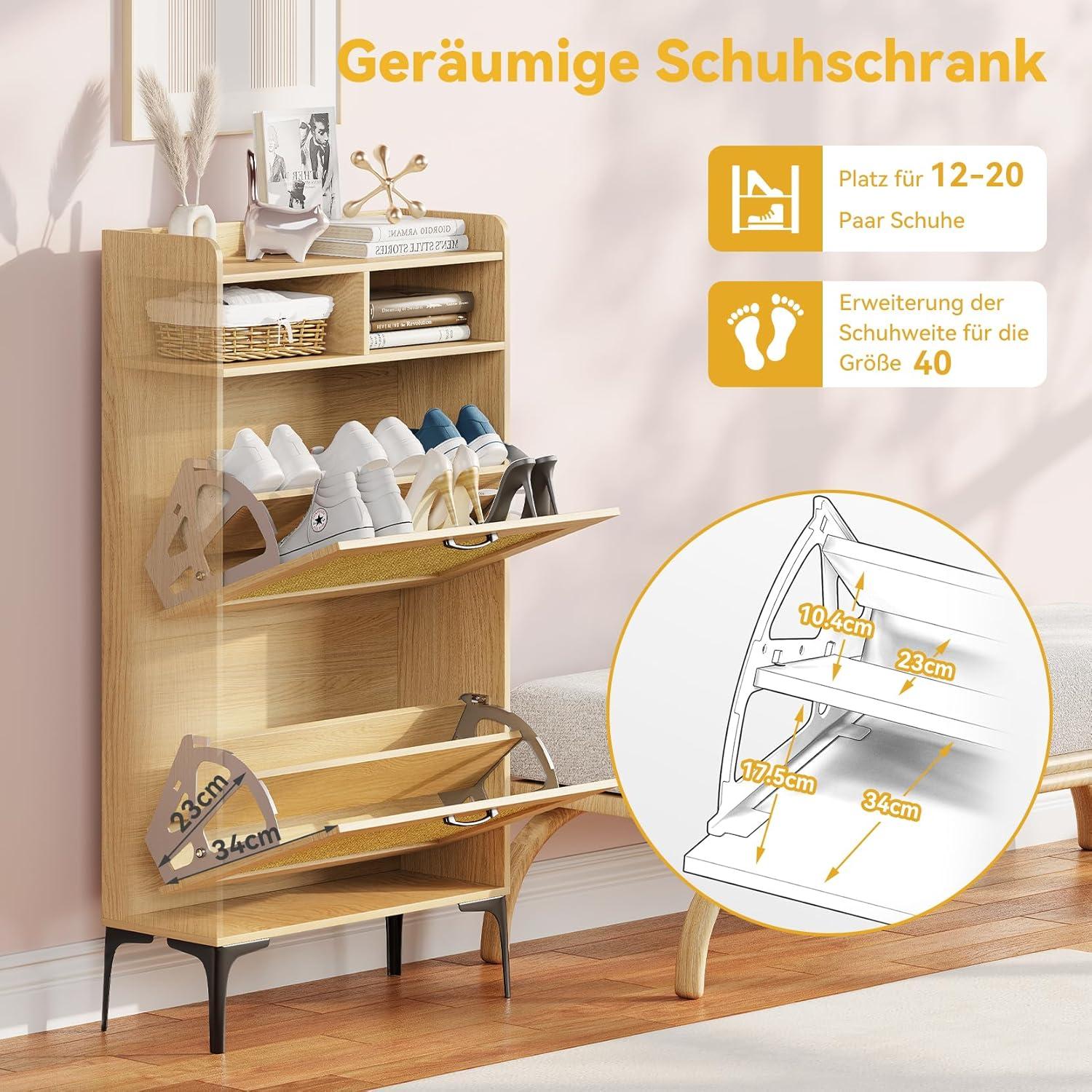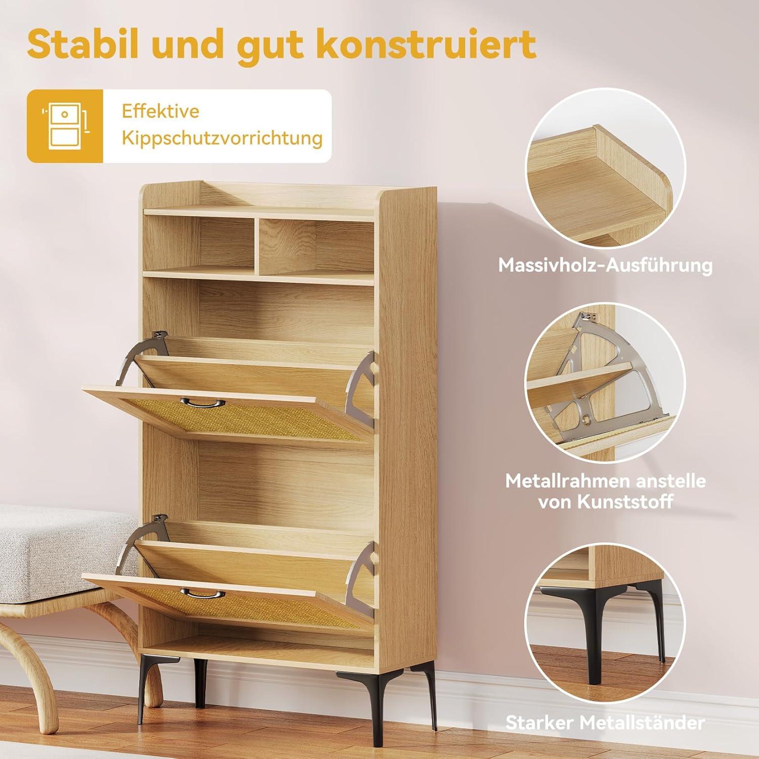 Armoire à chaussures Dripex avec décoration en rotin, dotée de 2 tiroirs à bascule et de pieds en métal, idéale pour entrée, couloir, salon, 24 x 60 x 114