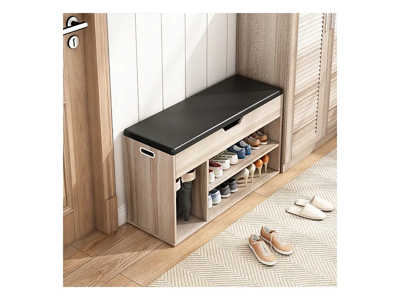 ARMOIRE À CHAUSSURES EN BOIS AVEC ASSISE, RANGEMENT, 2 ÉTAGÈRES, OUVERTURE, CHÊNE CLAIR