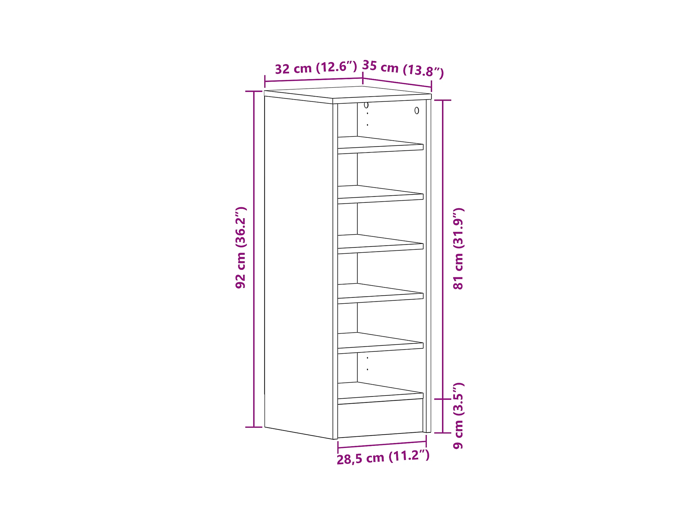 Armoire à chaussures en chêne noir 31,5x35x90 cm en bois reconstitué