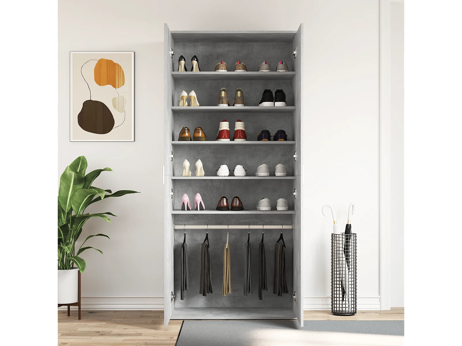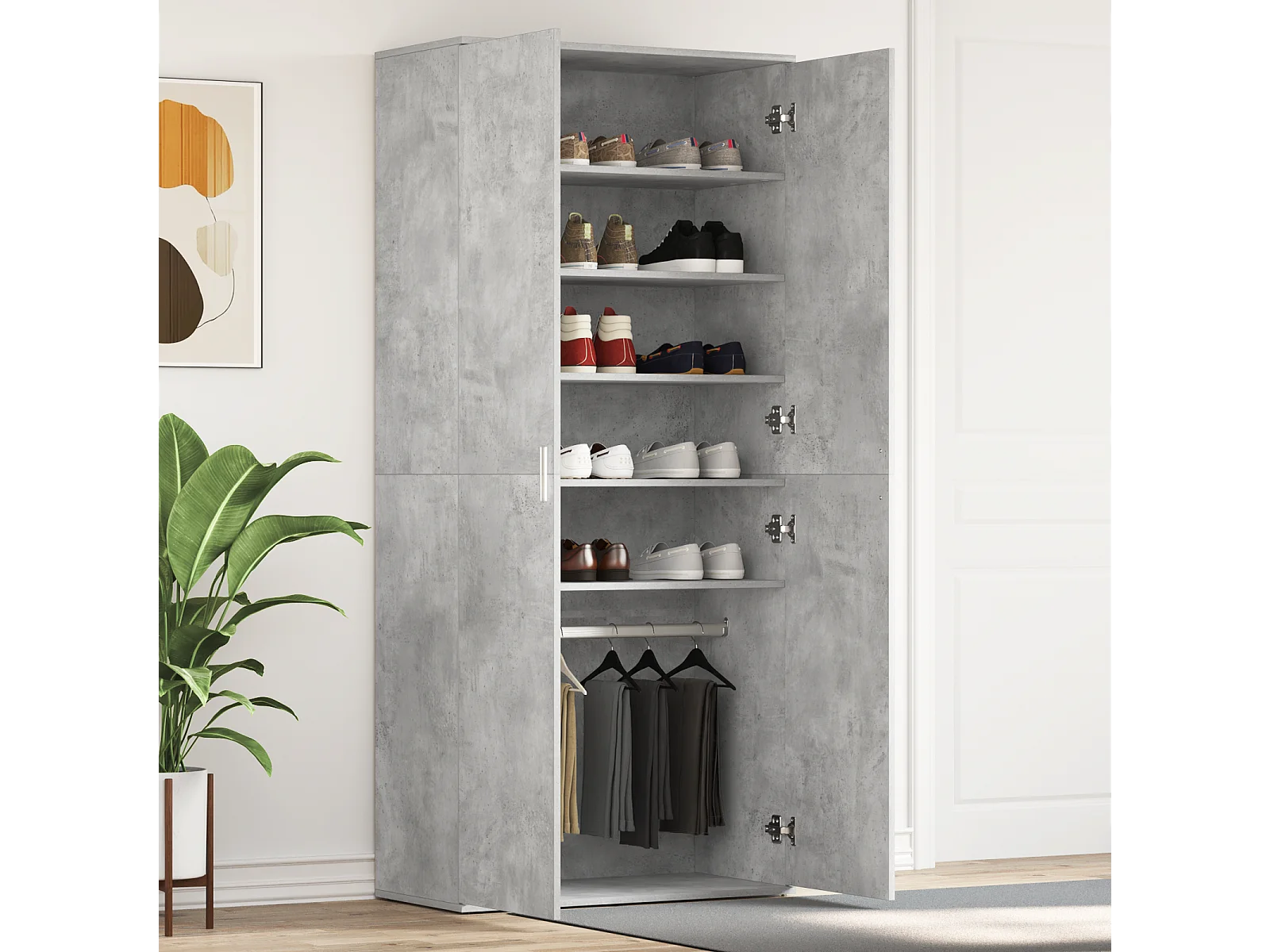 Armoire à chaussures gris béton 80x39x180 cm en bois aggloméré