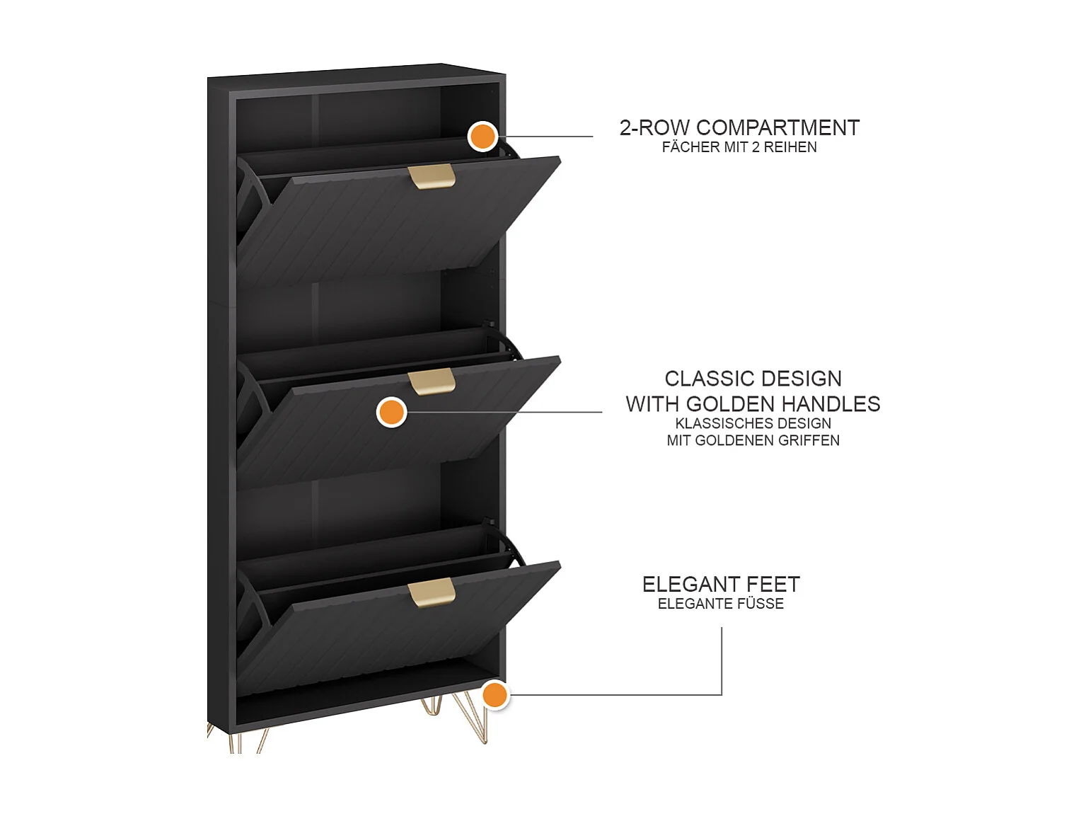 Armoire à chaussures noir 60x23.5x128.5 helge
