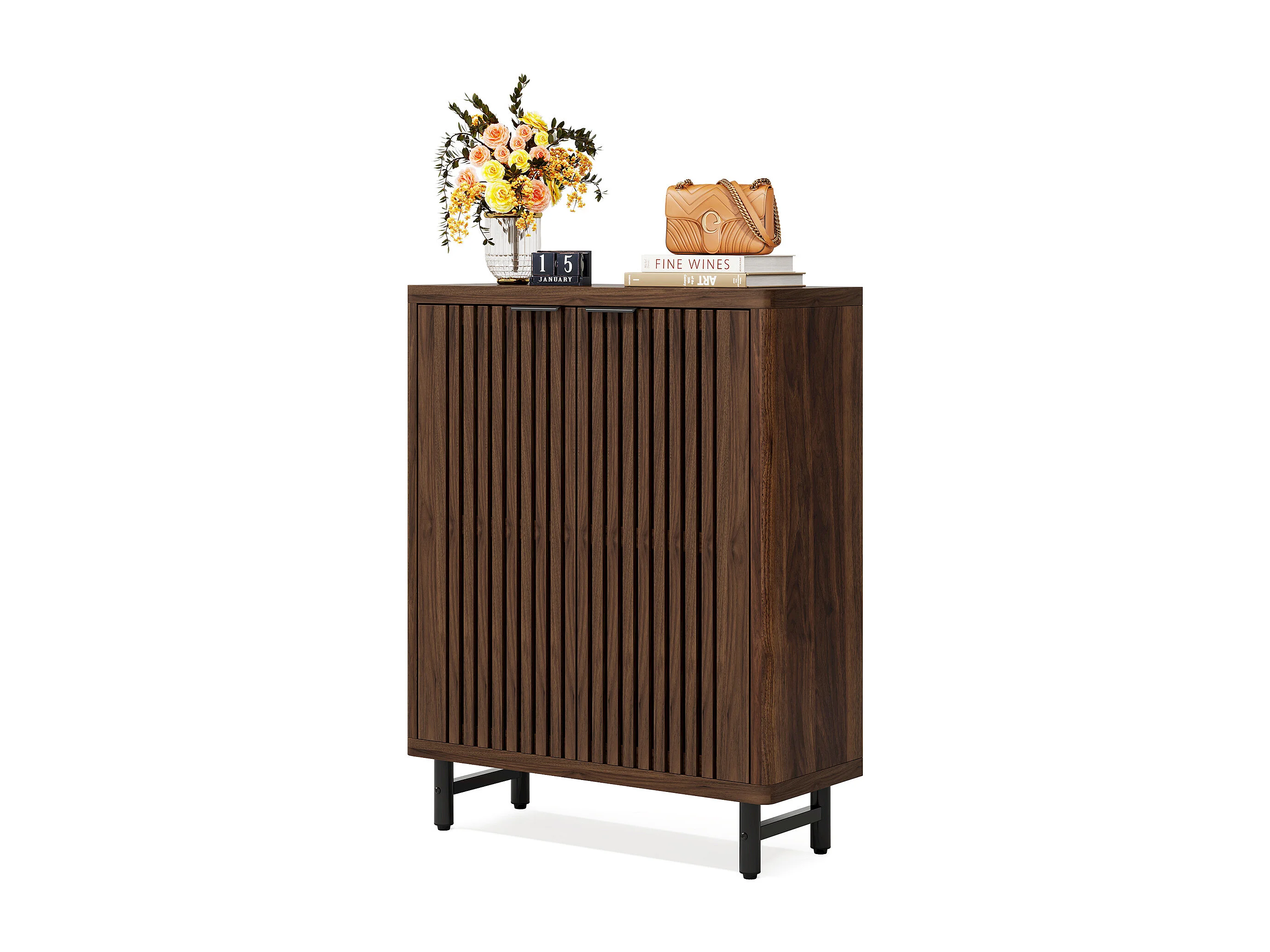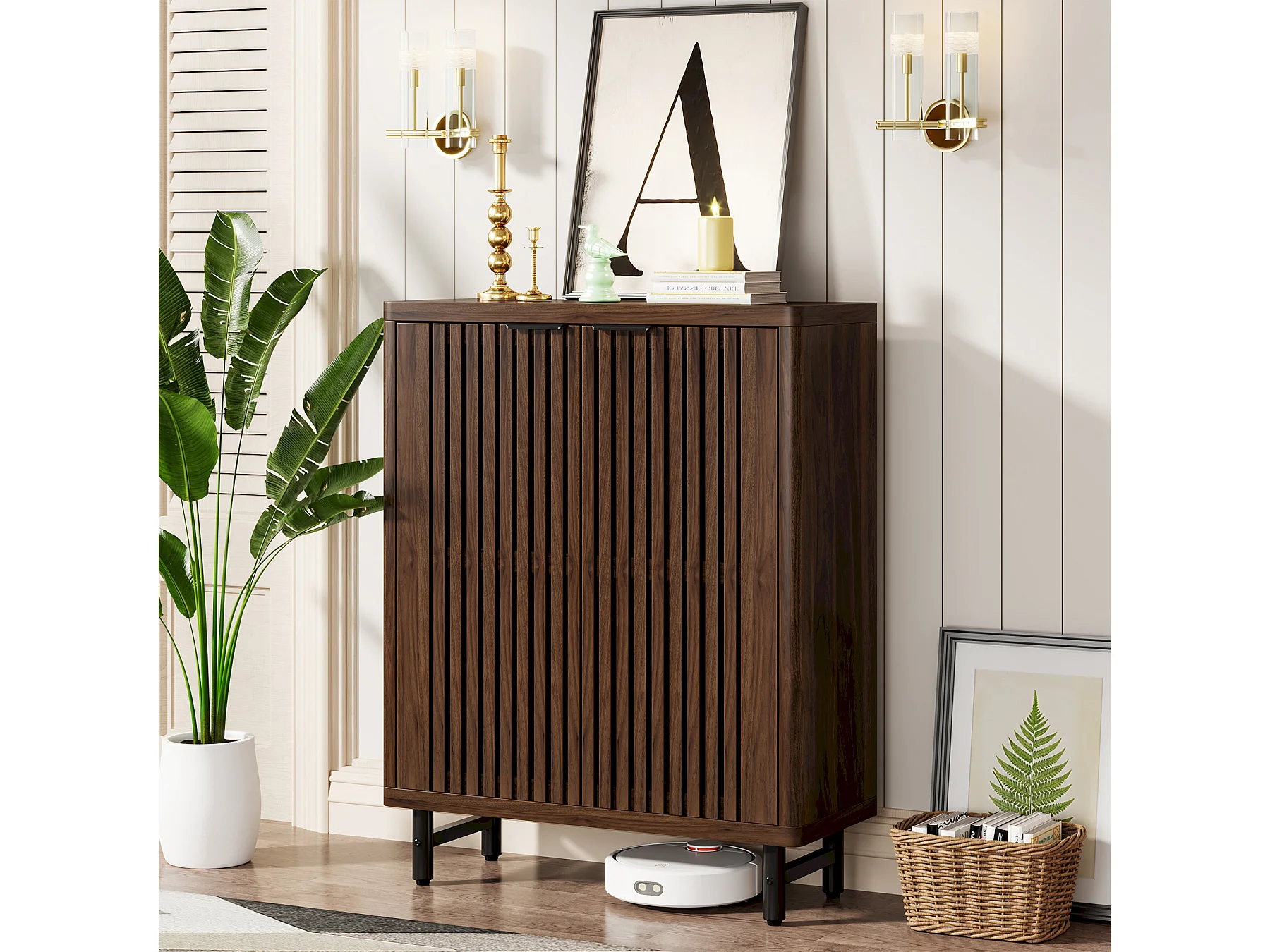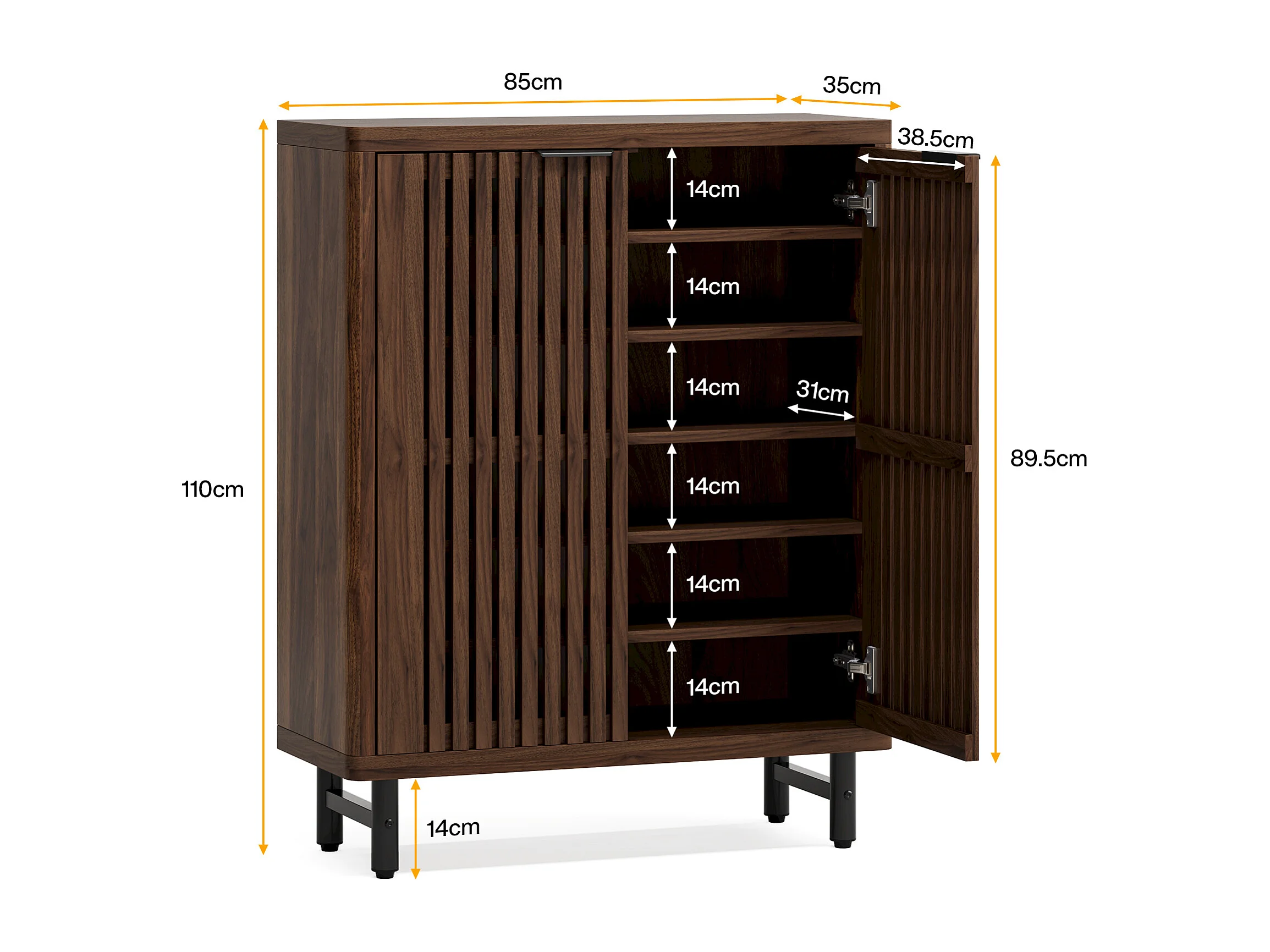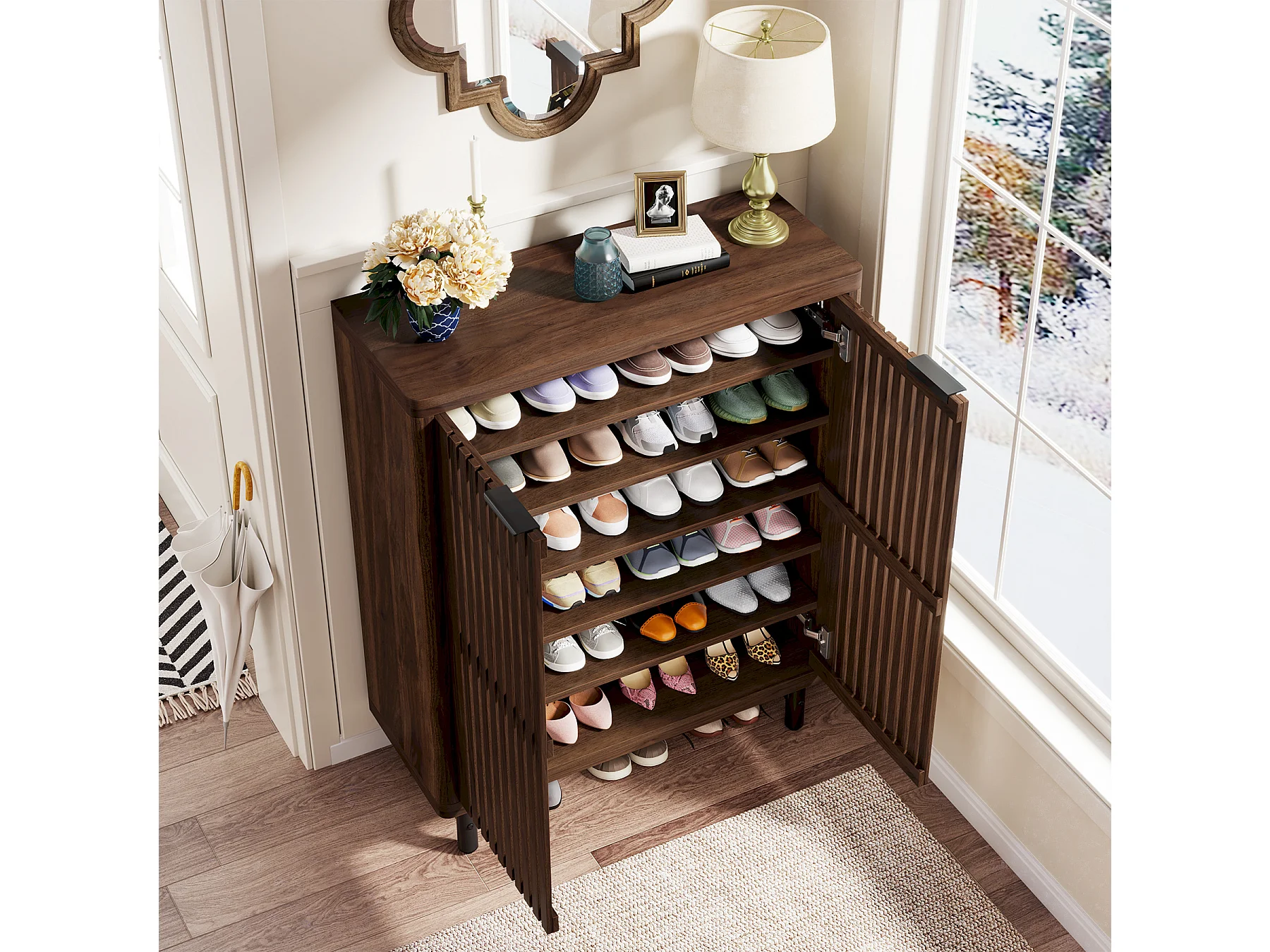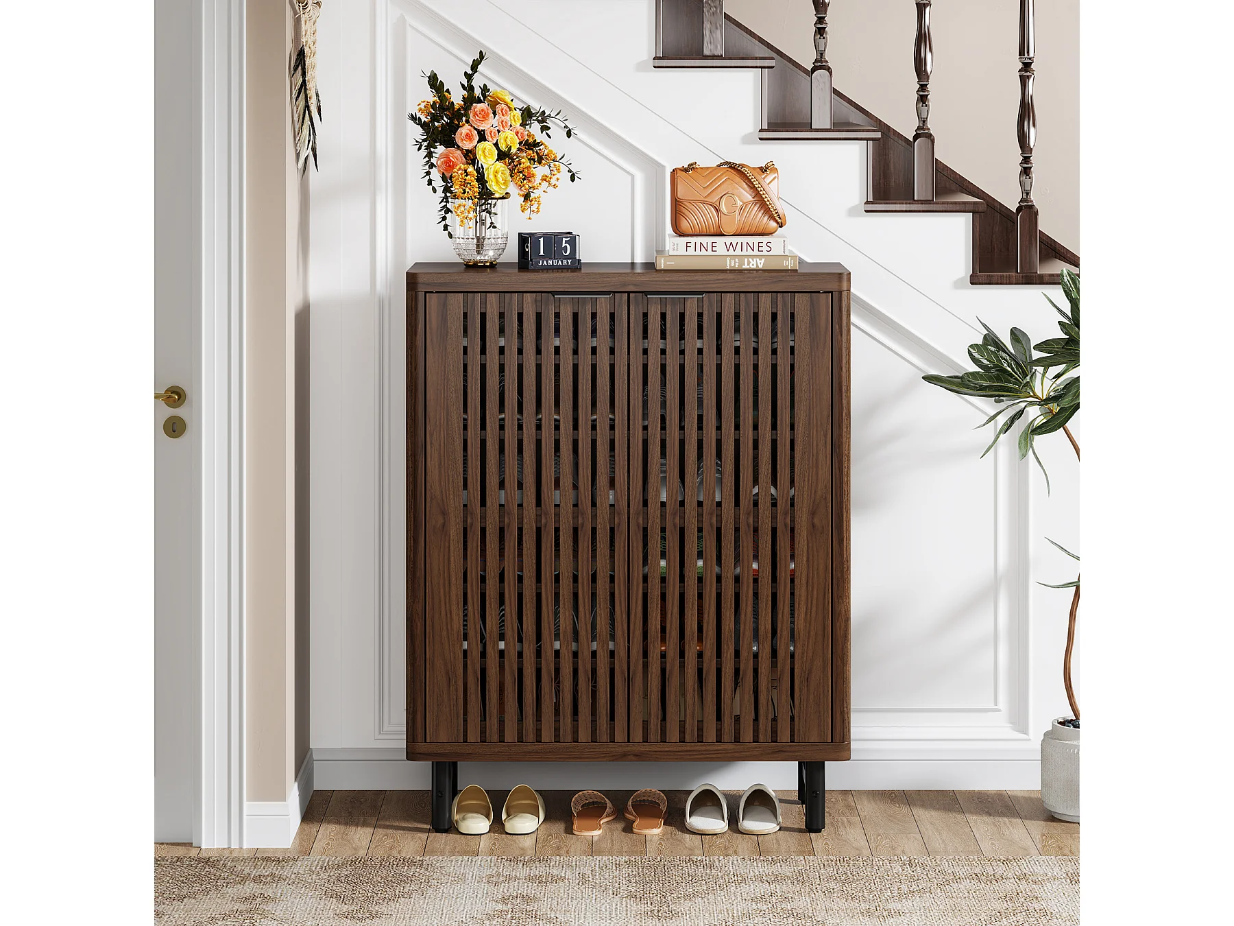 Meuble Chaussures avec 2 Portes, 6 étages Meuble de Rangement à Chaussures, Séparateurs Réglables, pour Entrée,Salon, Marron