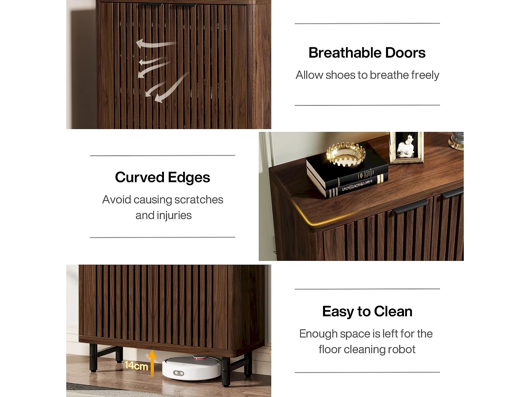Meuble à Chaussures à 5 Niveaux avec Portes Rondes à persiennes, avec étagères réglables