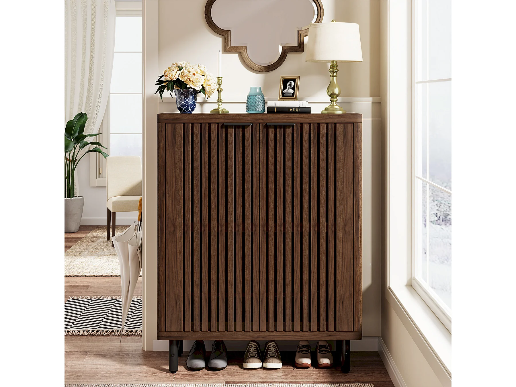 Meuble à chaussures avec portes, meuble de rangement à chaussures à 7 niveaux avec étagères réglables