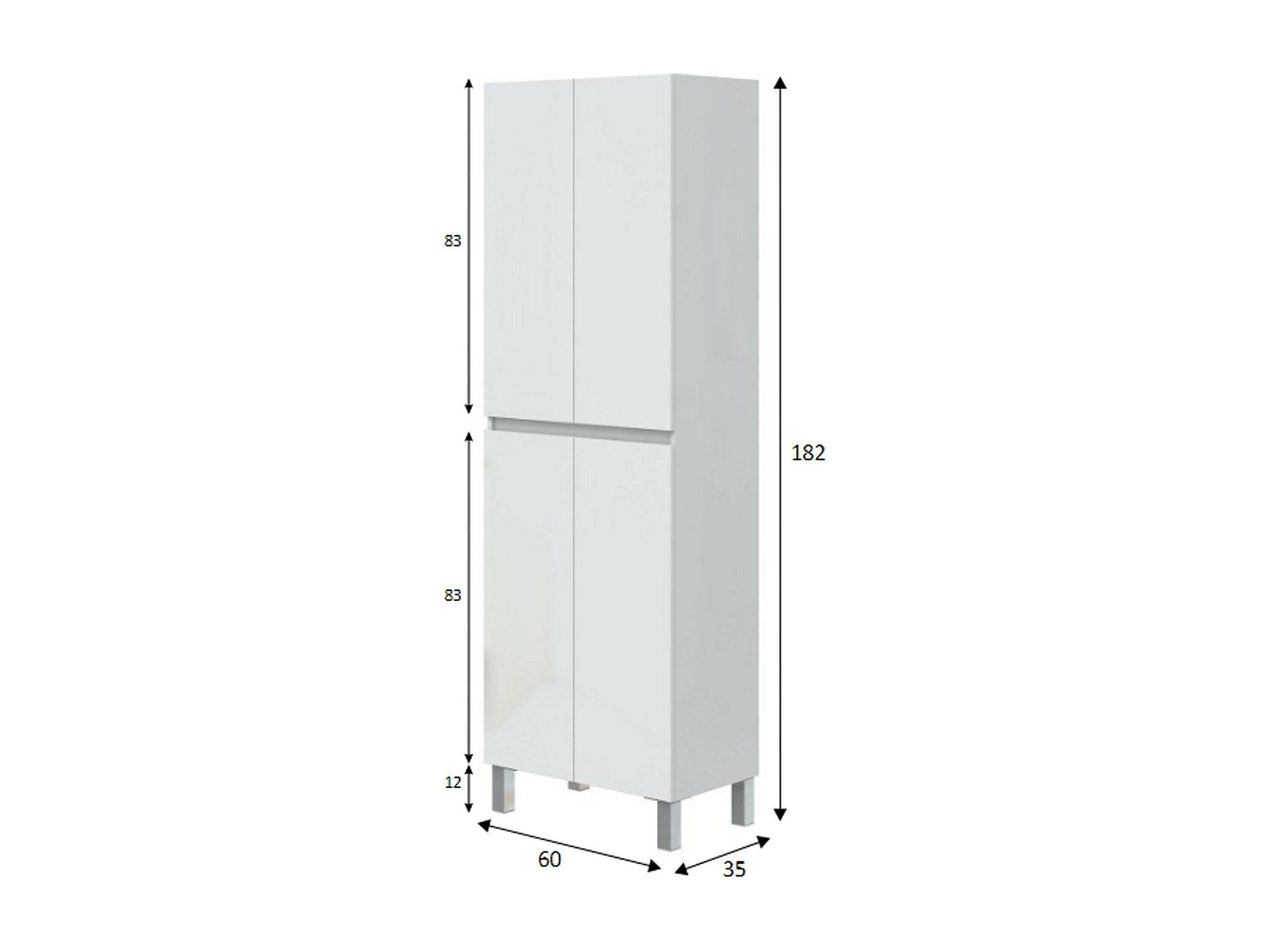 Armoire à colonnes Dzecchi, Élément mural de salle de bain, Armoire haute multifonctionnelle, Meuble polyvalente, 60x35 h182 cm, Blanc brillant