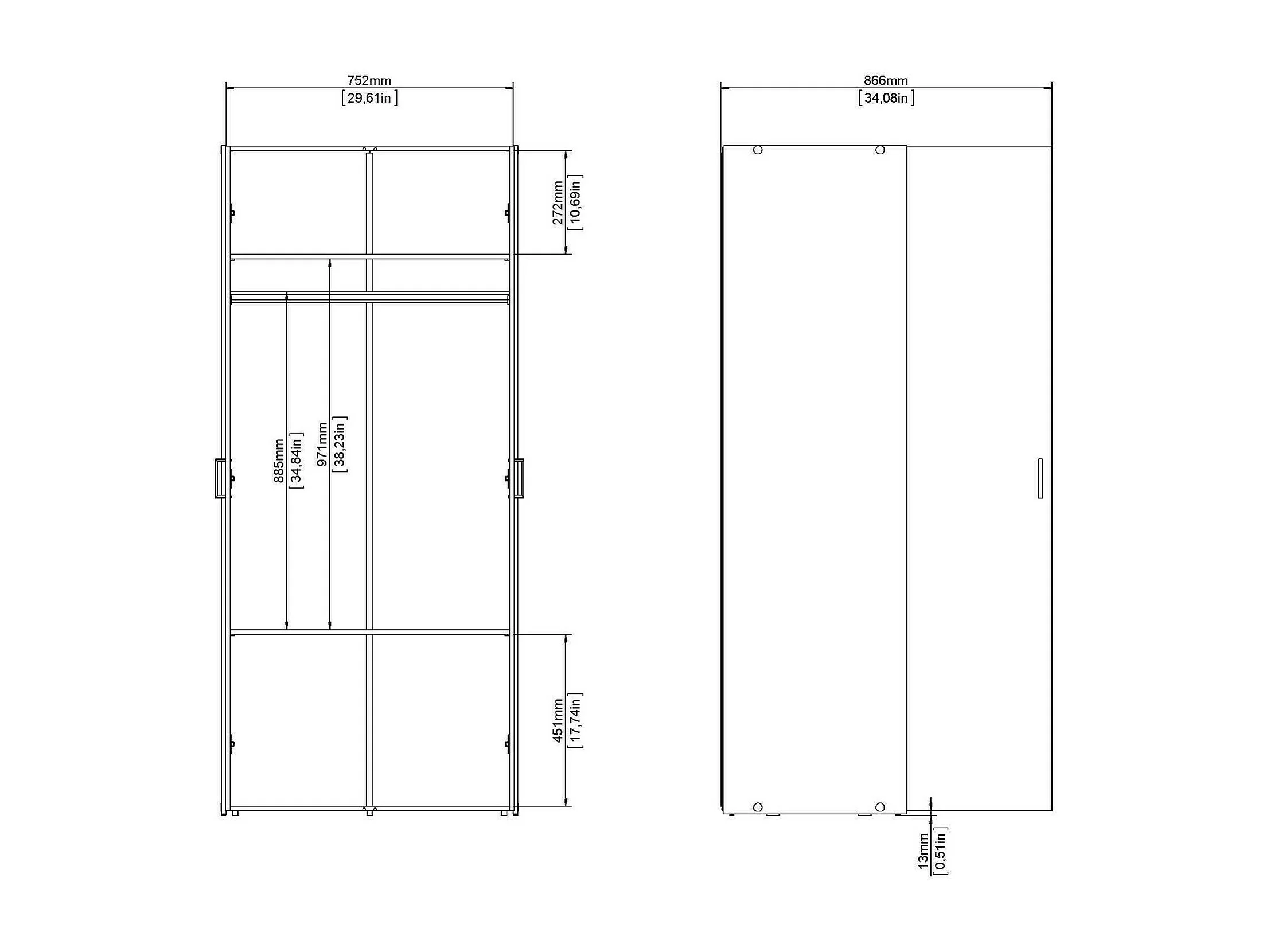 Armoire à deux portes battantes avec deux étagères internes et tringle à vêtements, couleur blanche, Dimensions 77 x 175 x 49 cm