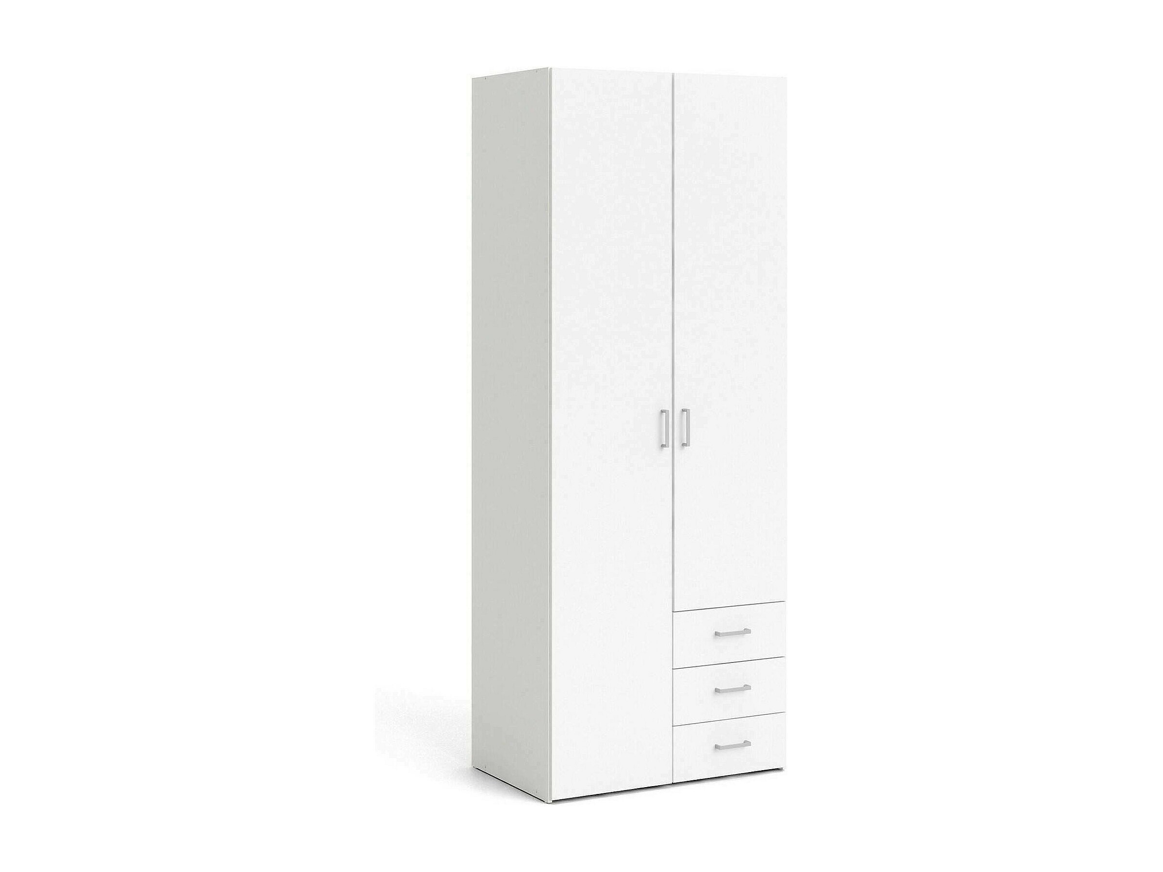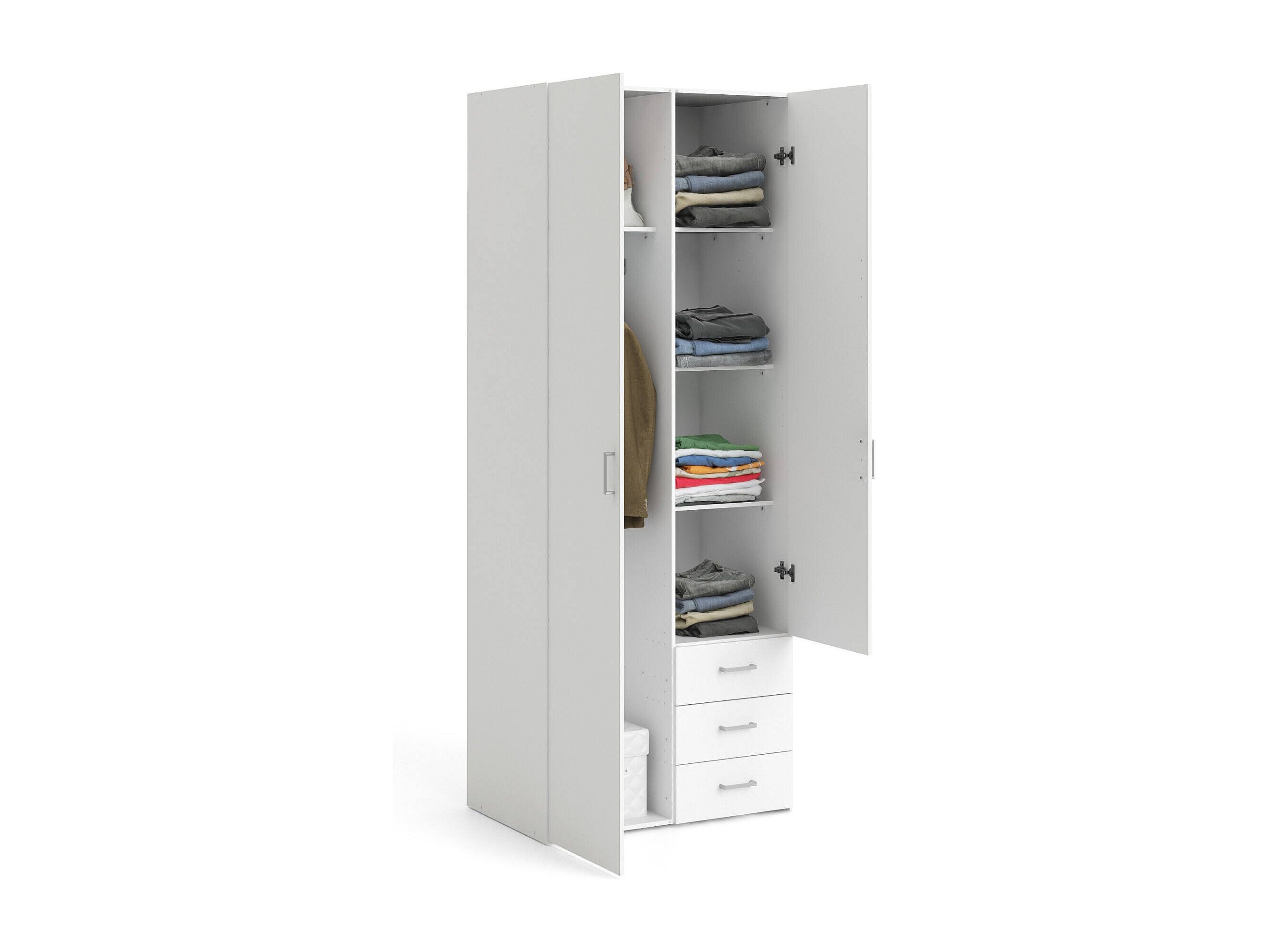 Armoire avec deux portes battantes et trois tiroirs, couleur blanche, Dimensions 77 x 175 x 49 cm
