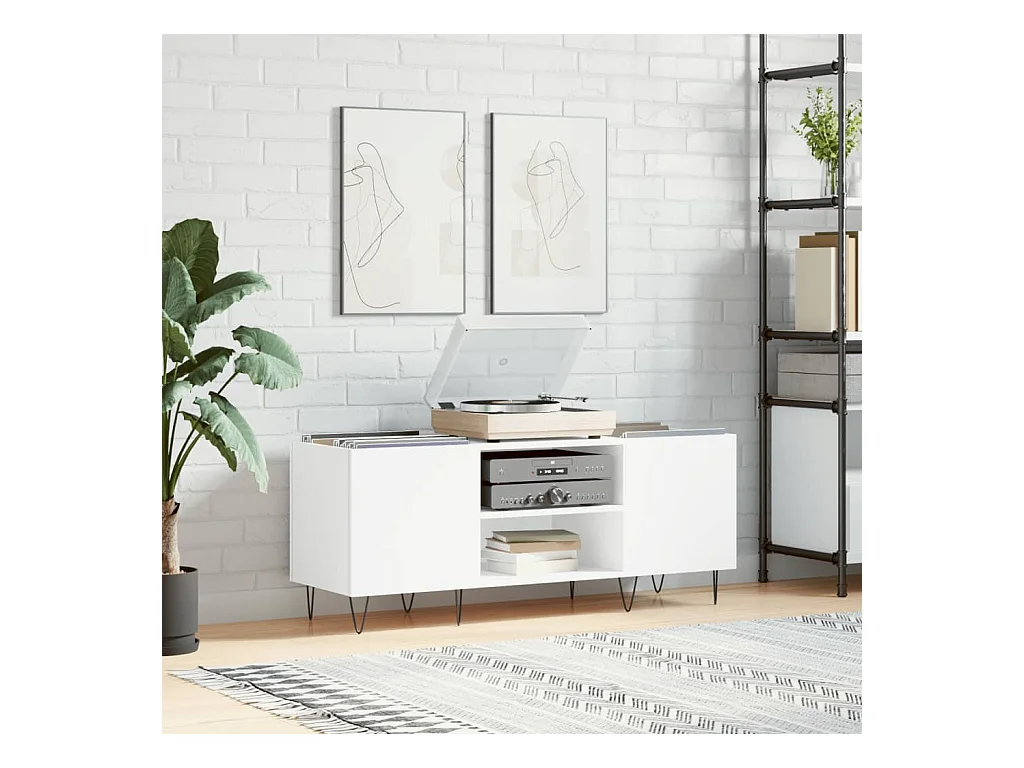 Armoire à disques blanc brillant 121x38x48 cm bois d'ingénierie FR57963