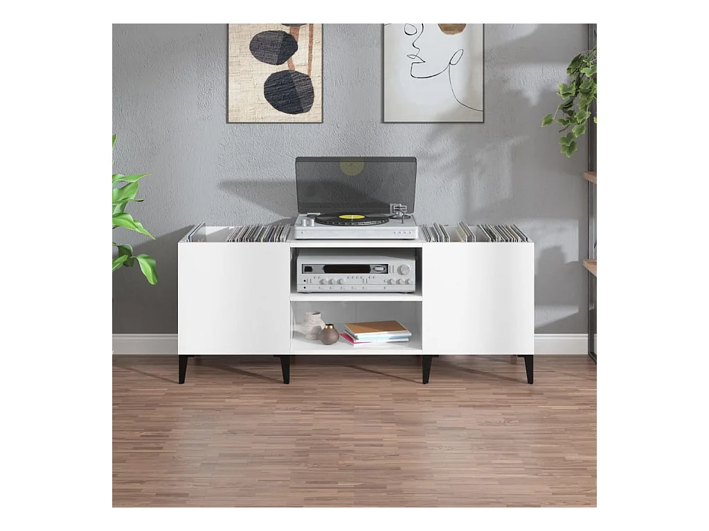Armoire à disques blanc brillant 121x38x48 cm bois d'ingénierie