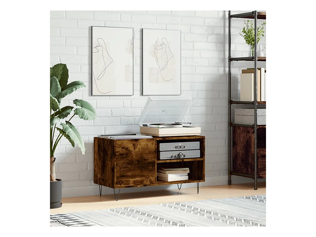 Armoire à disques chêne fumé 85x38x48 cm bois d'ingénierie