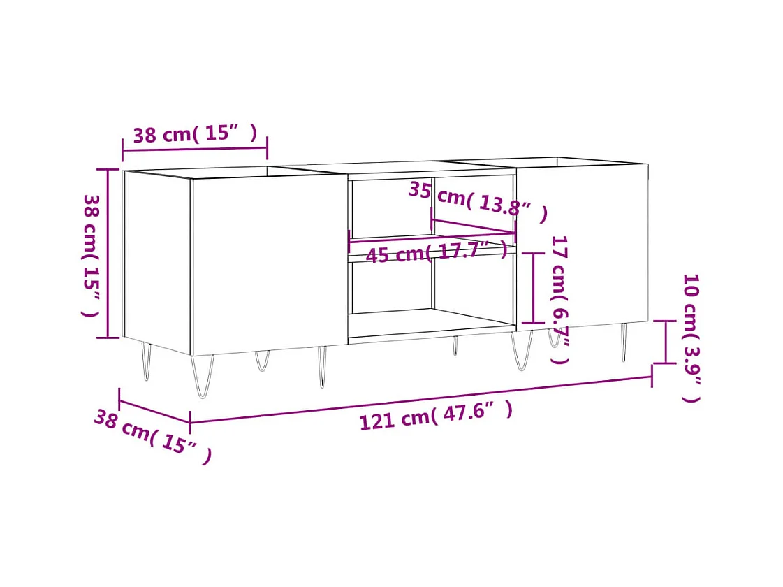 Meuble à disques Chêne Sonoma 121x38x48 cm Bois d'ingénierie