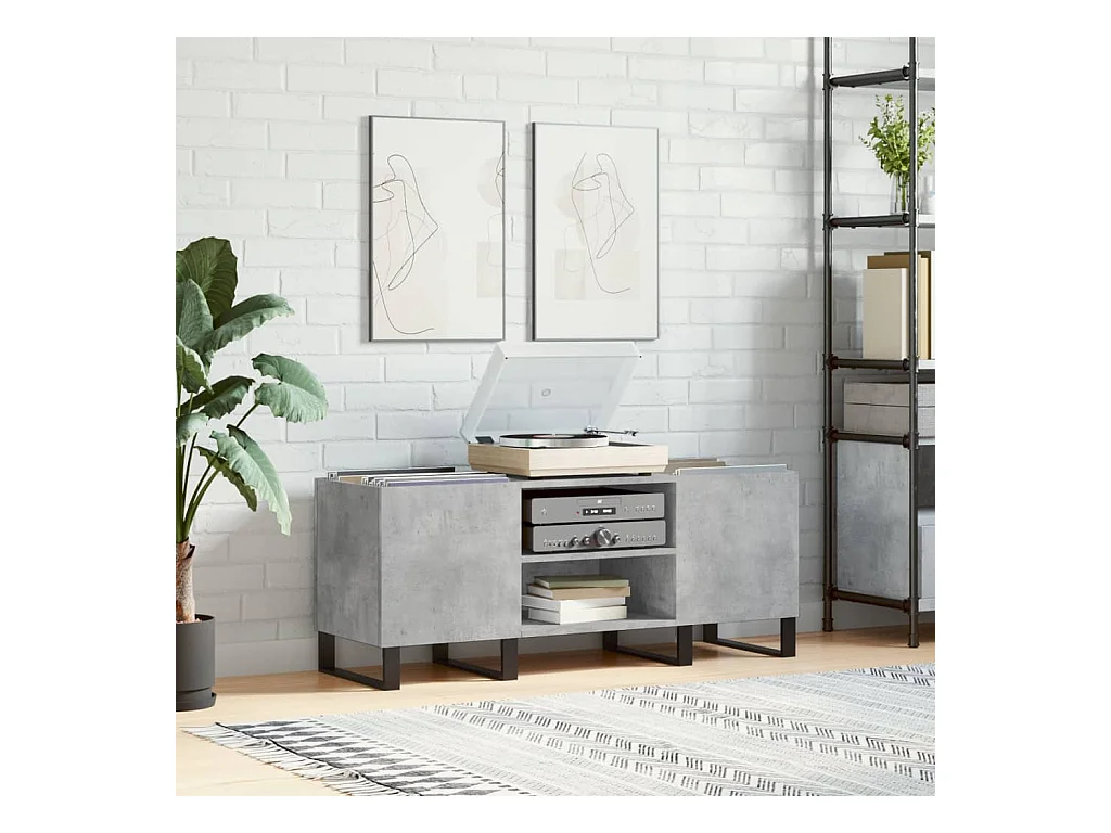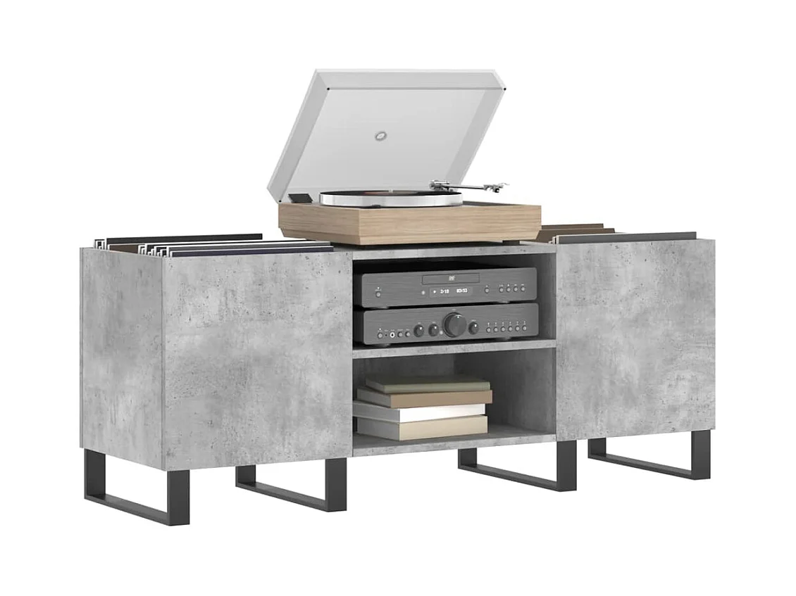 Armoire à disques gris béton 121x38x48 cm bois d'ingénierie