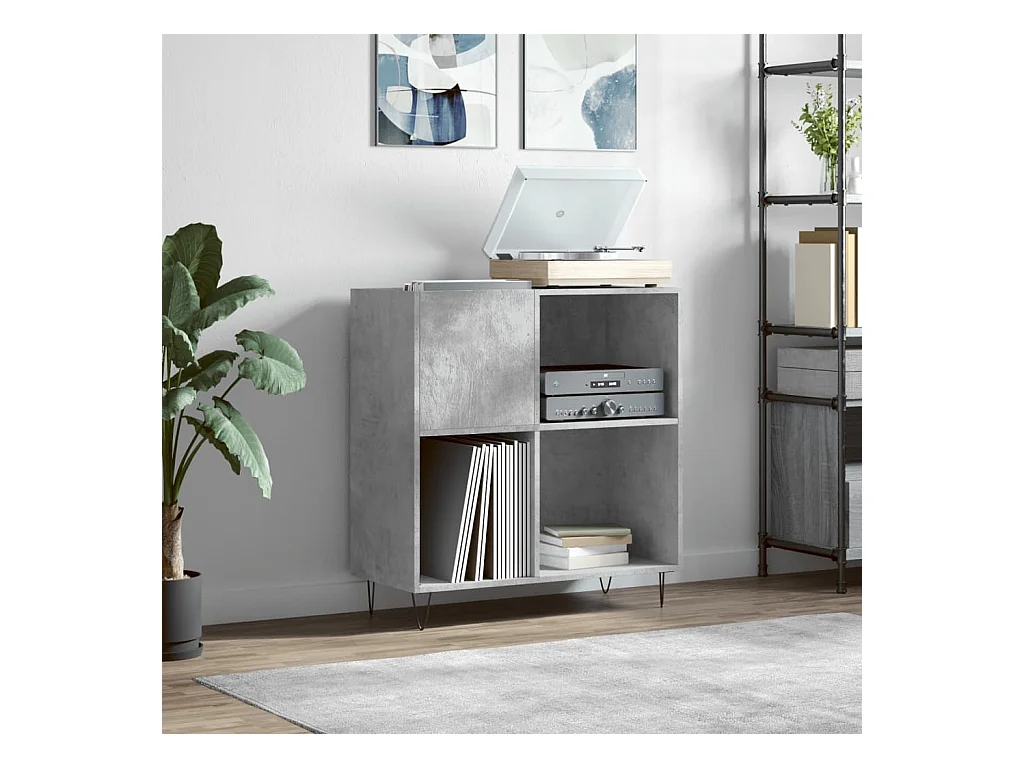 Armoire à disques gris béton 84,5x38x89 cm bois d'ingénierie FR84912