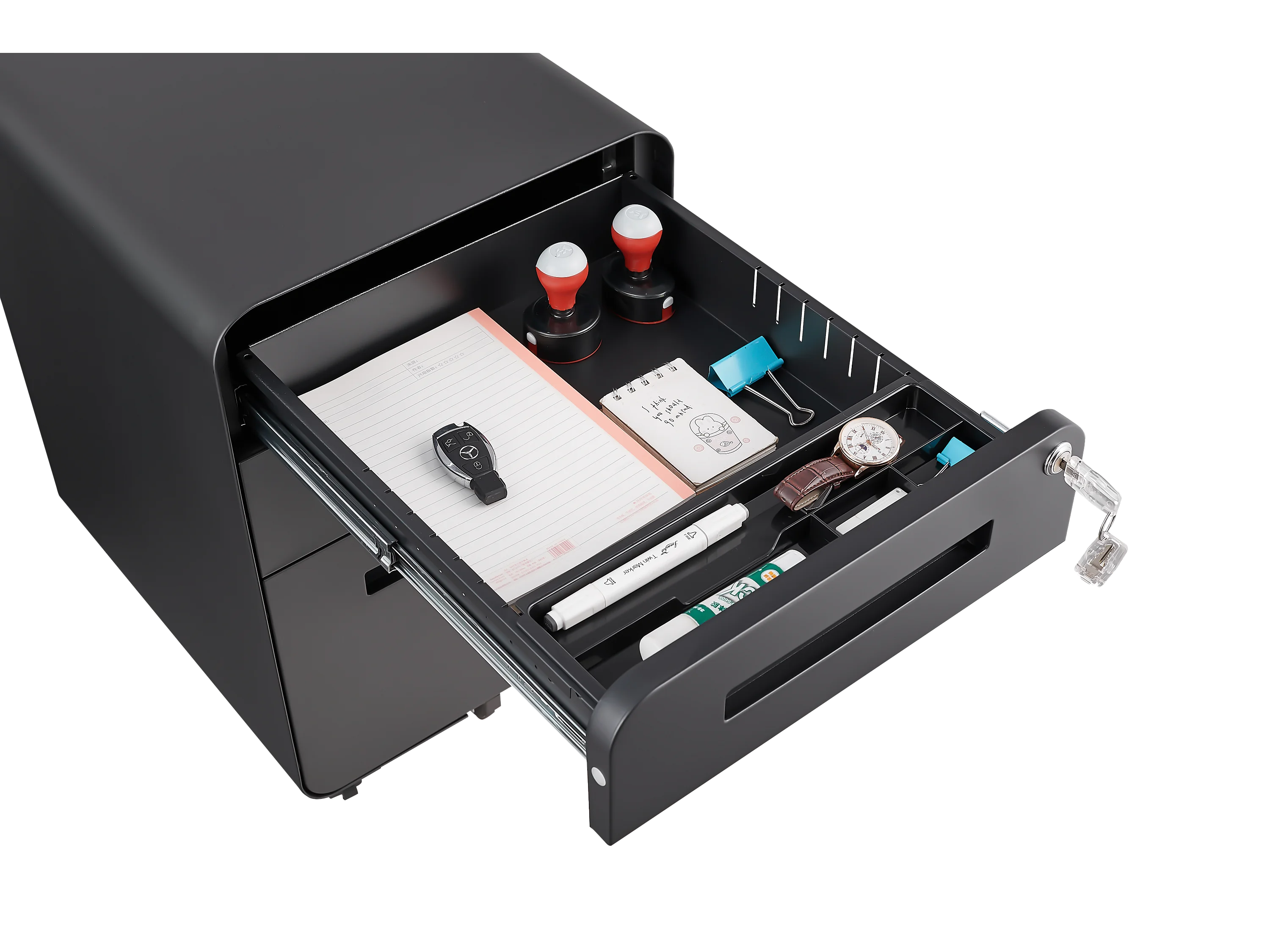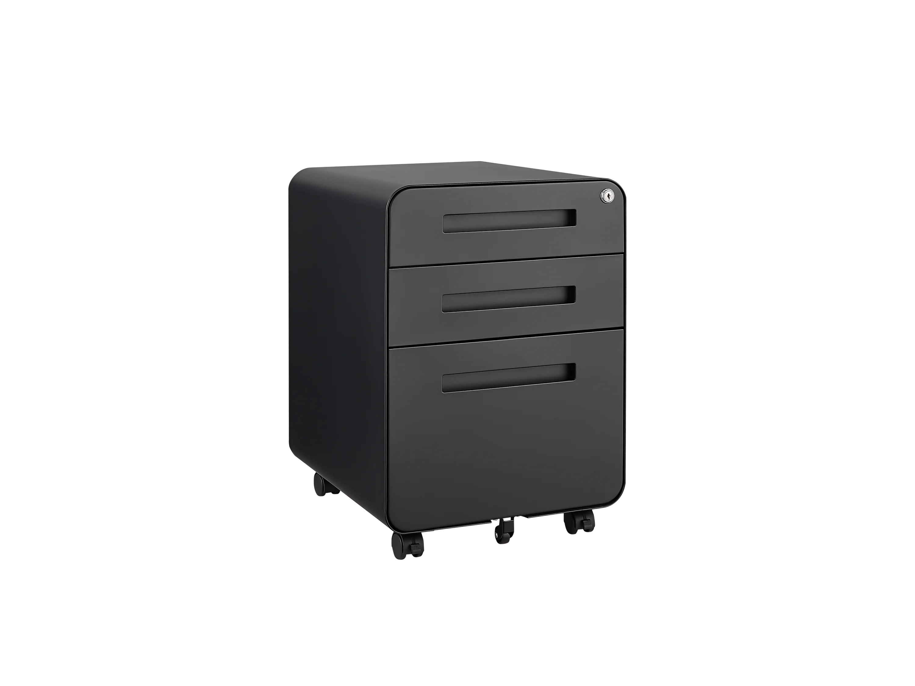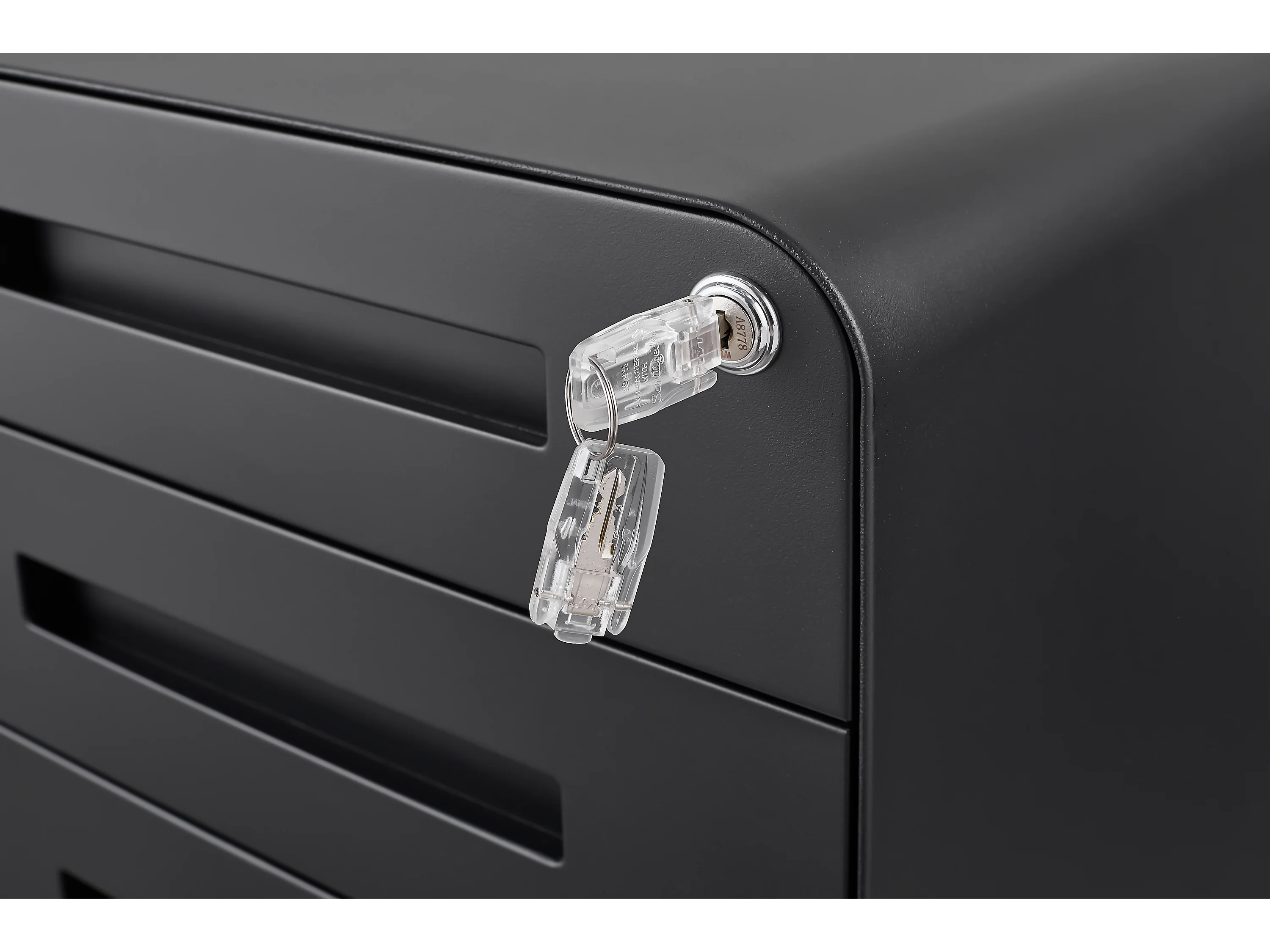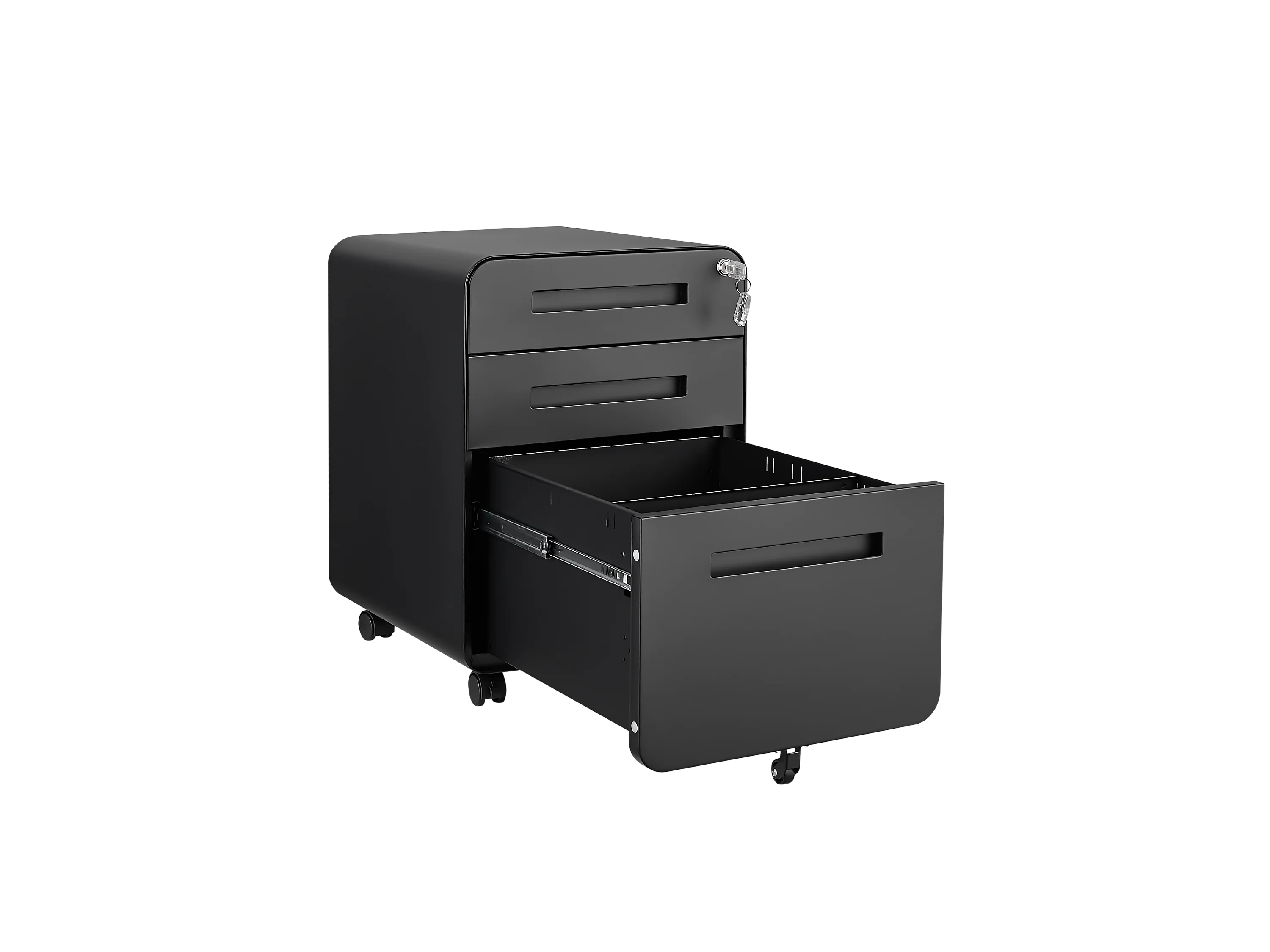 Armoire à fichiers mobile 3 tiroirs, métal, avec roulettes, anti-basculement, noir (46x40x58 cm)