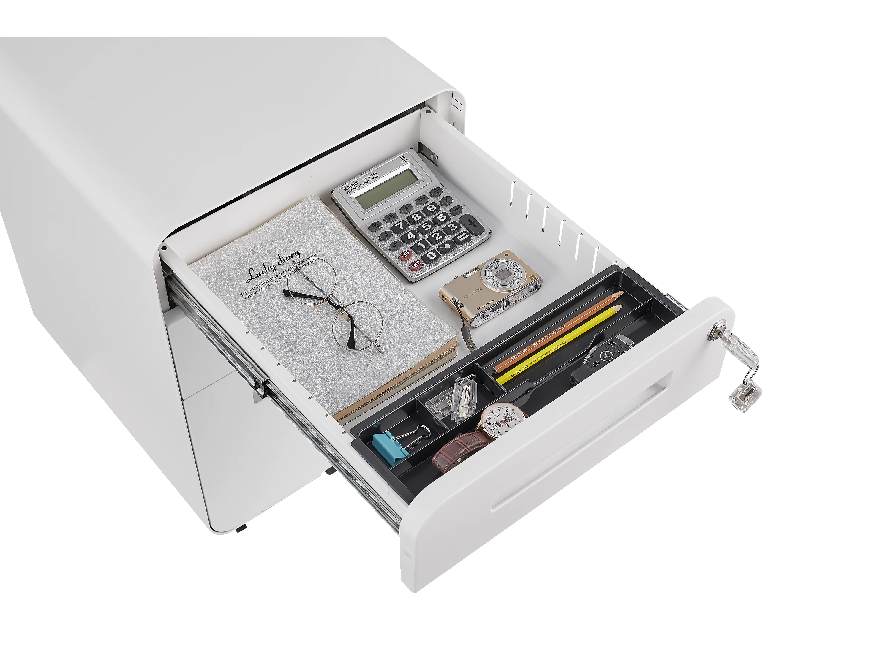 Armoire à fichiers mobile 3 tiroirs, métal, verrouillable, avec roulettes, blanc (46x40x58 cm)