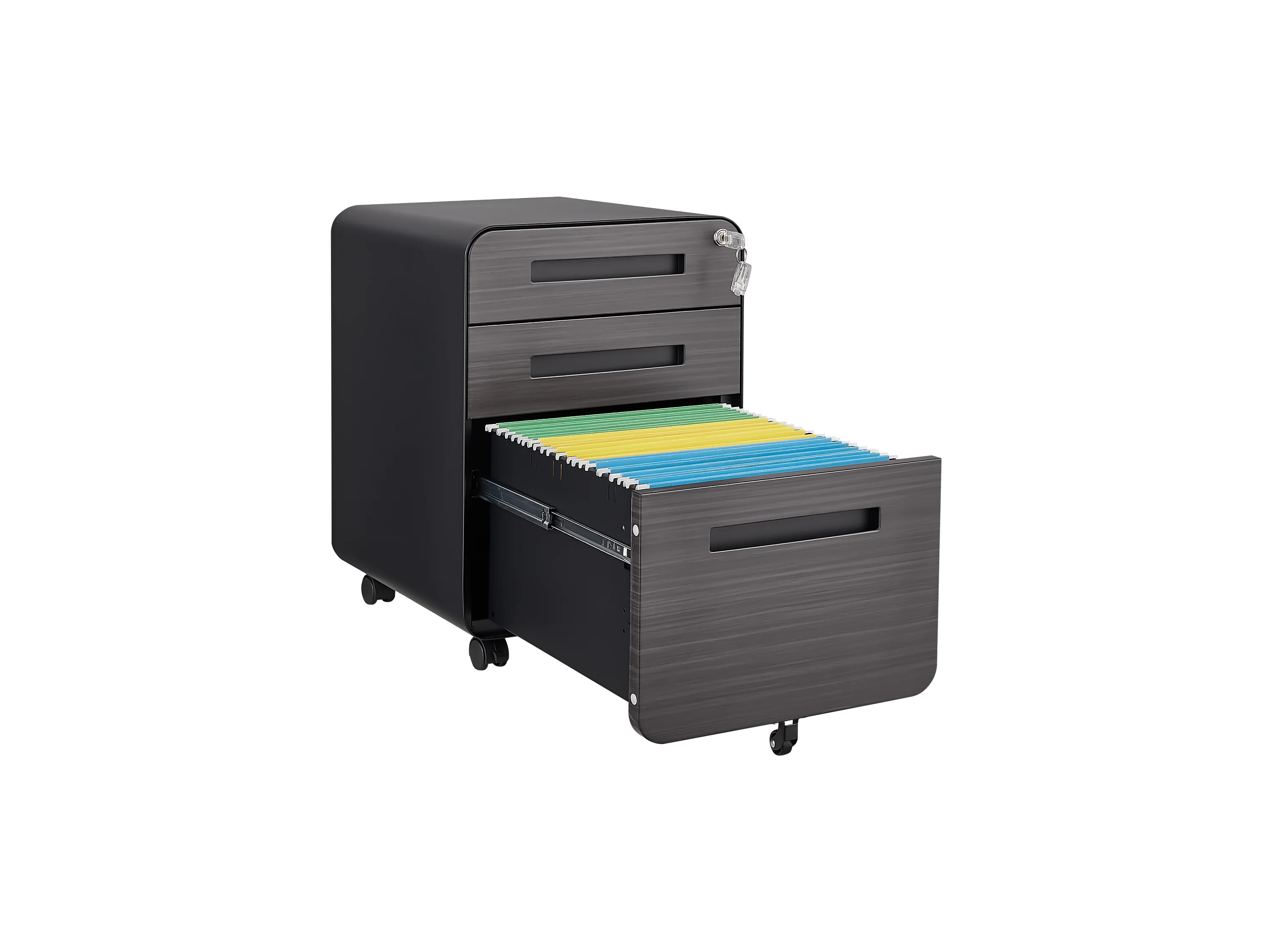Armoire à fichiers mobile 3 tiroirs, métal, verrouillable, avec roulettes, noir (46x40x58 cm)