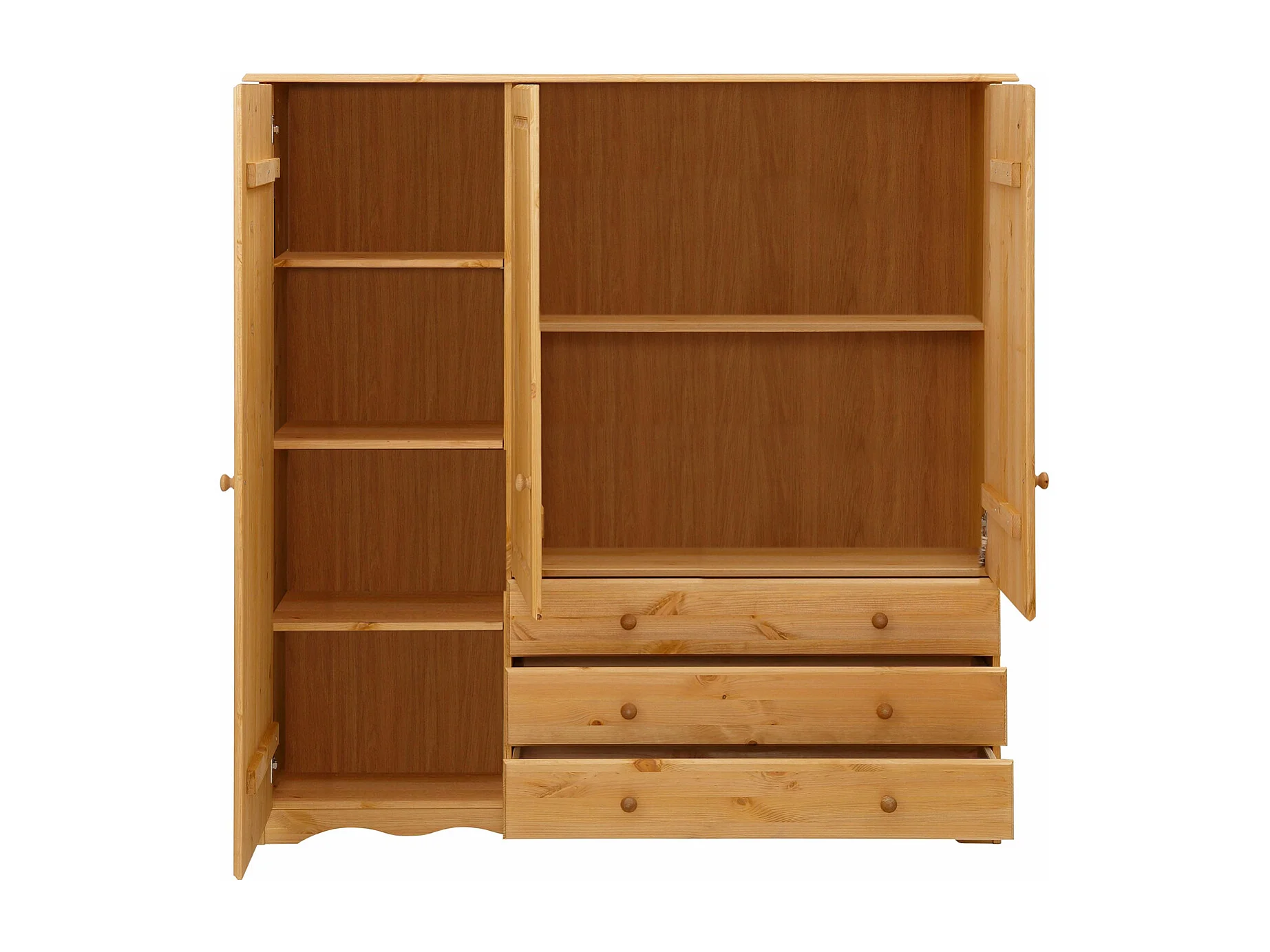 Minik|Armoire avec 3 portes et 3 tiroirs en pin naturel