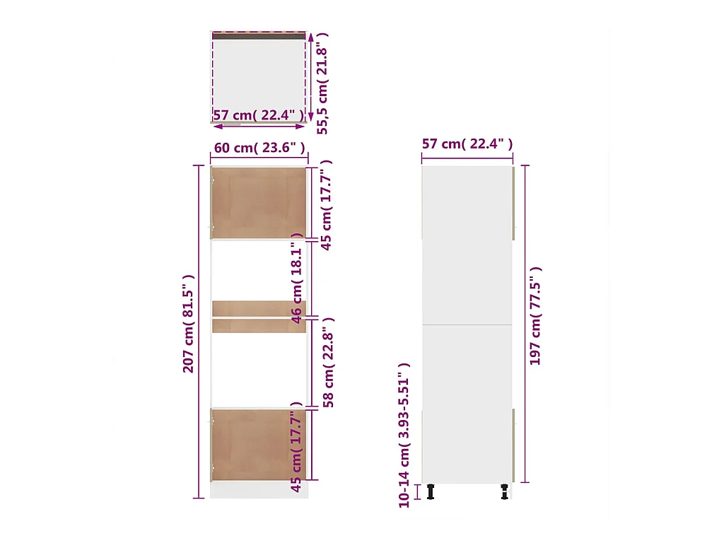 Meuble micro-ondes "Lyon" Chêne brun 60 x 57 x 207 cm Bois d'ingénierie