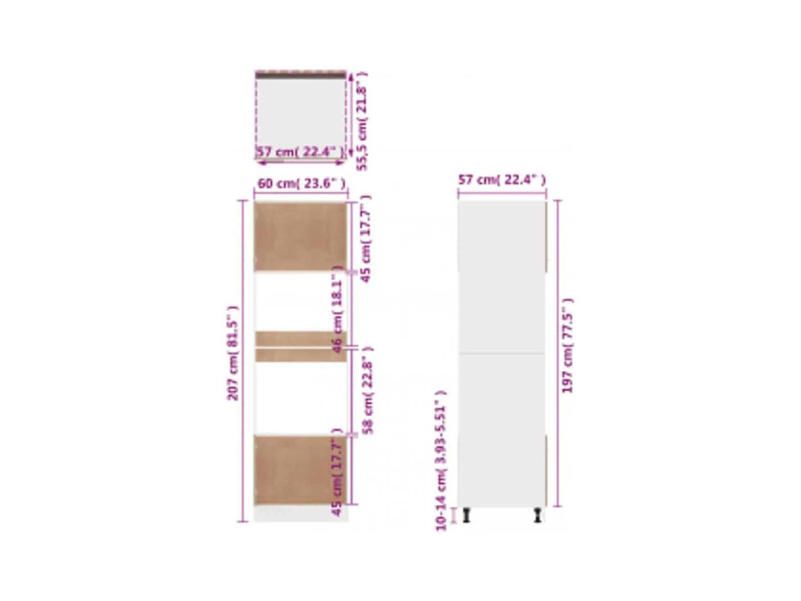 Armoire réfrigérée "Lyon" Gris béton 60 x 57 x 207 cm Bois d'ingénierie