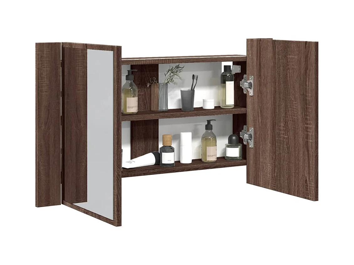 Armoire à miroir à LED de bain chêne marron 80x12x45 cm FR48031
