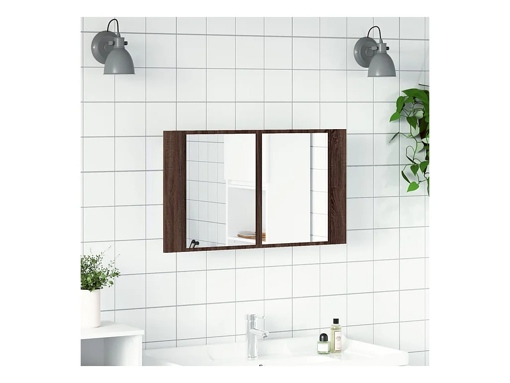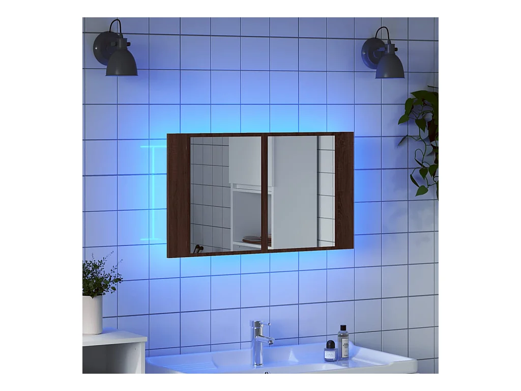 Armoire à miroir à LED de bain chêne fumé 80x12x45 cm acrylique FR55330