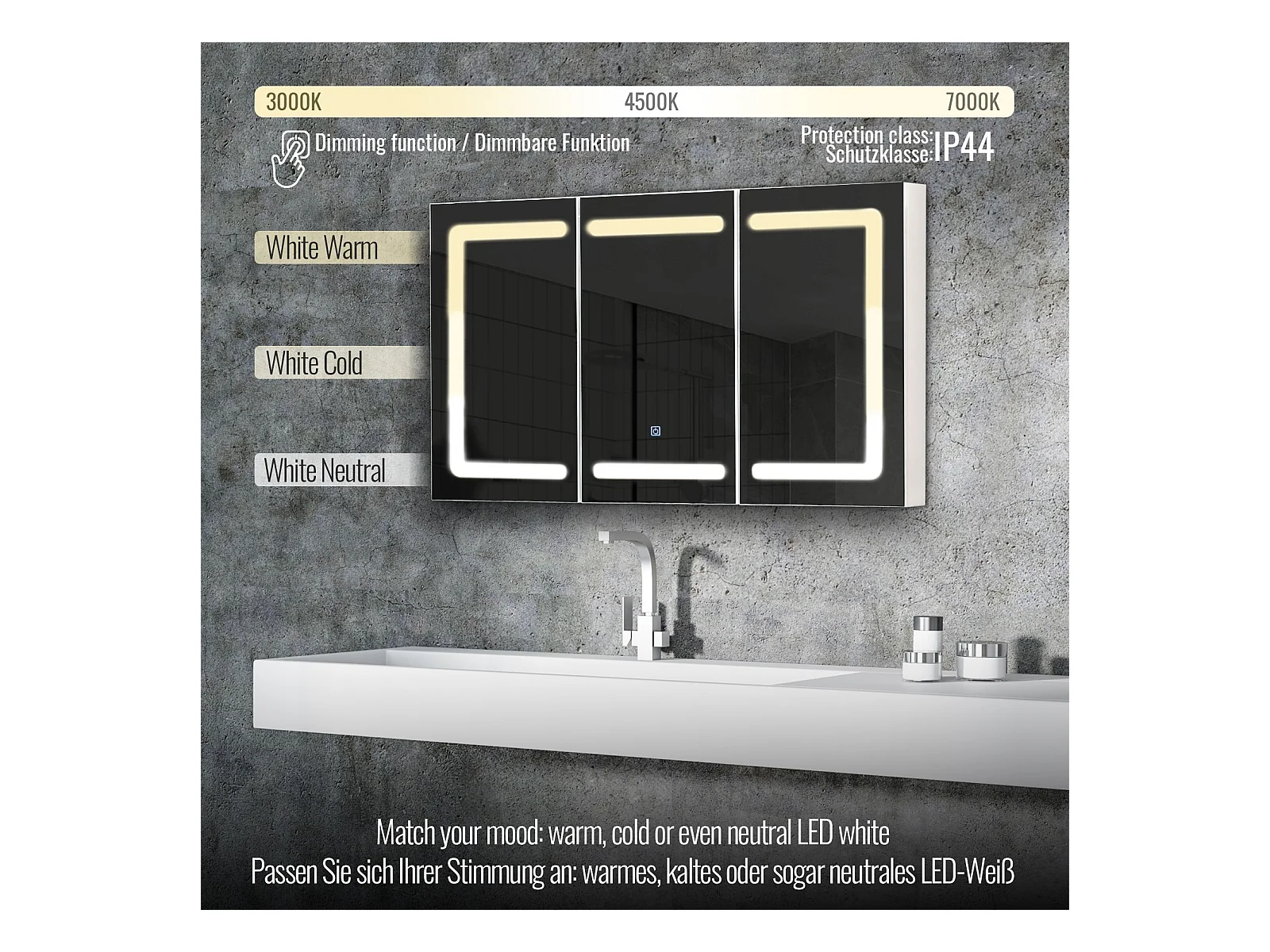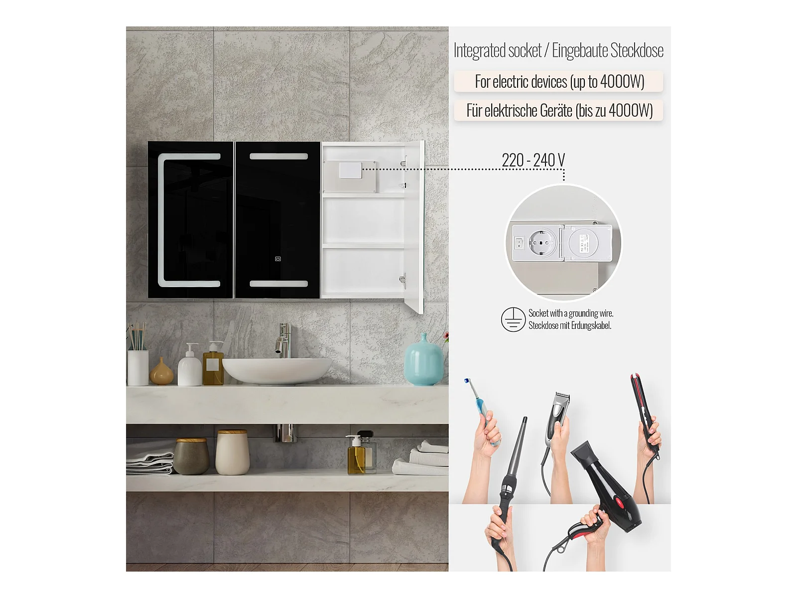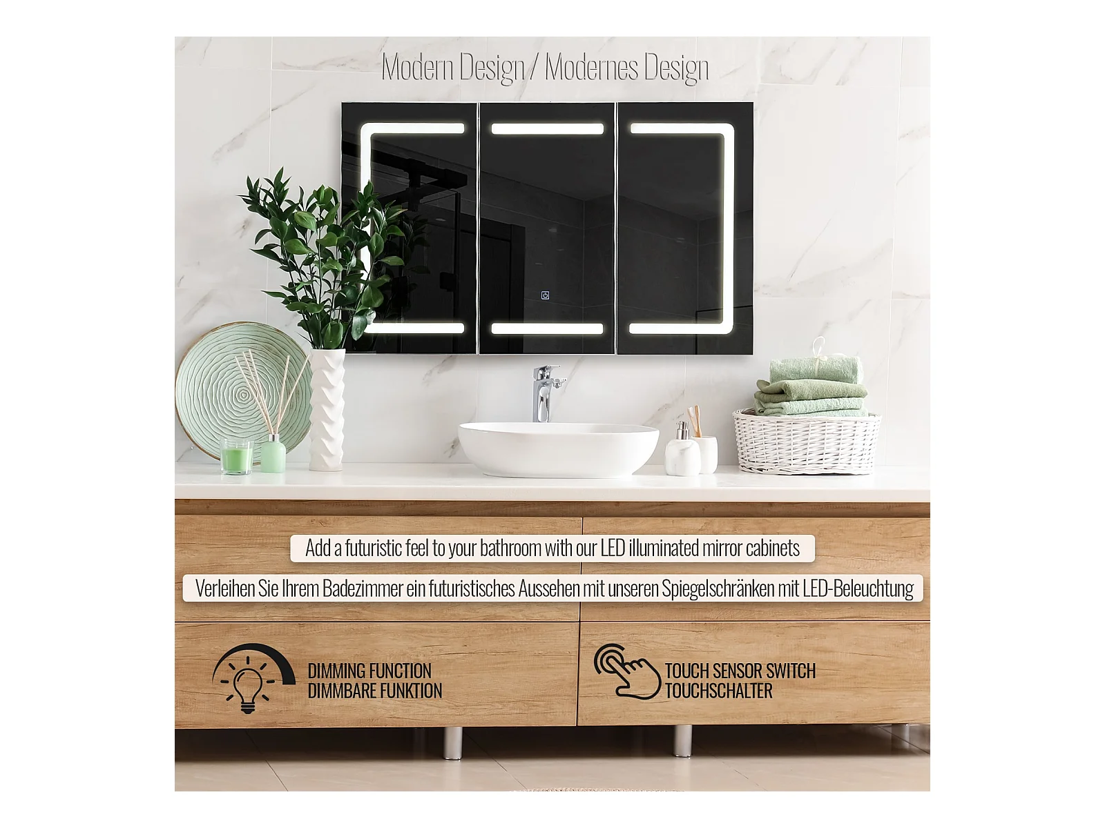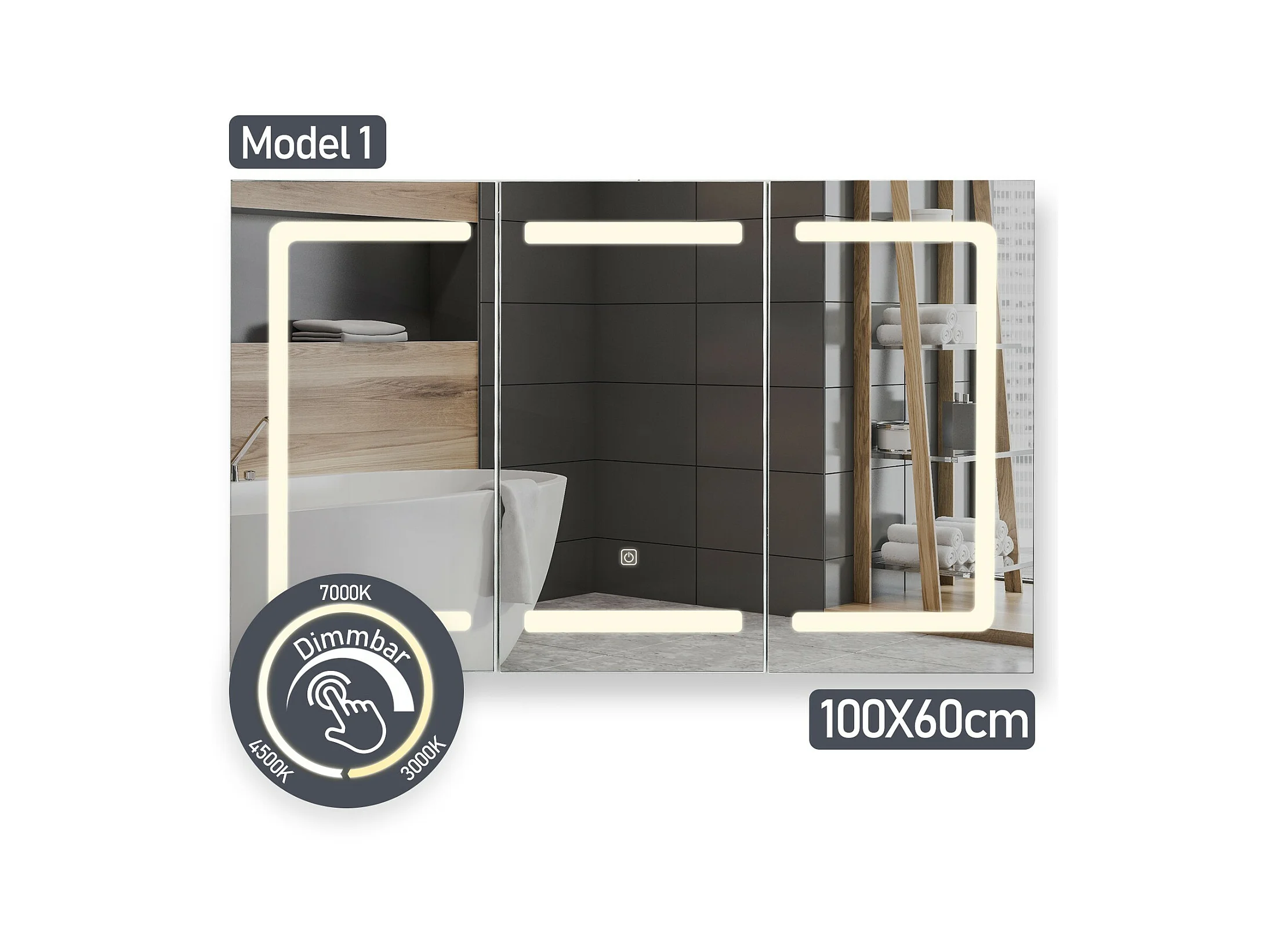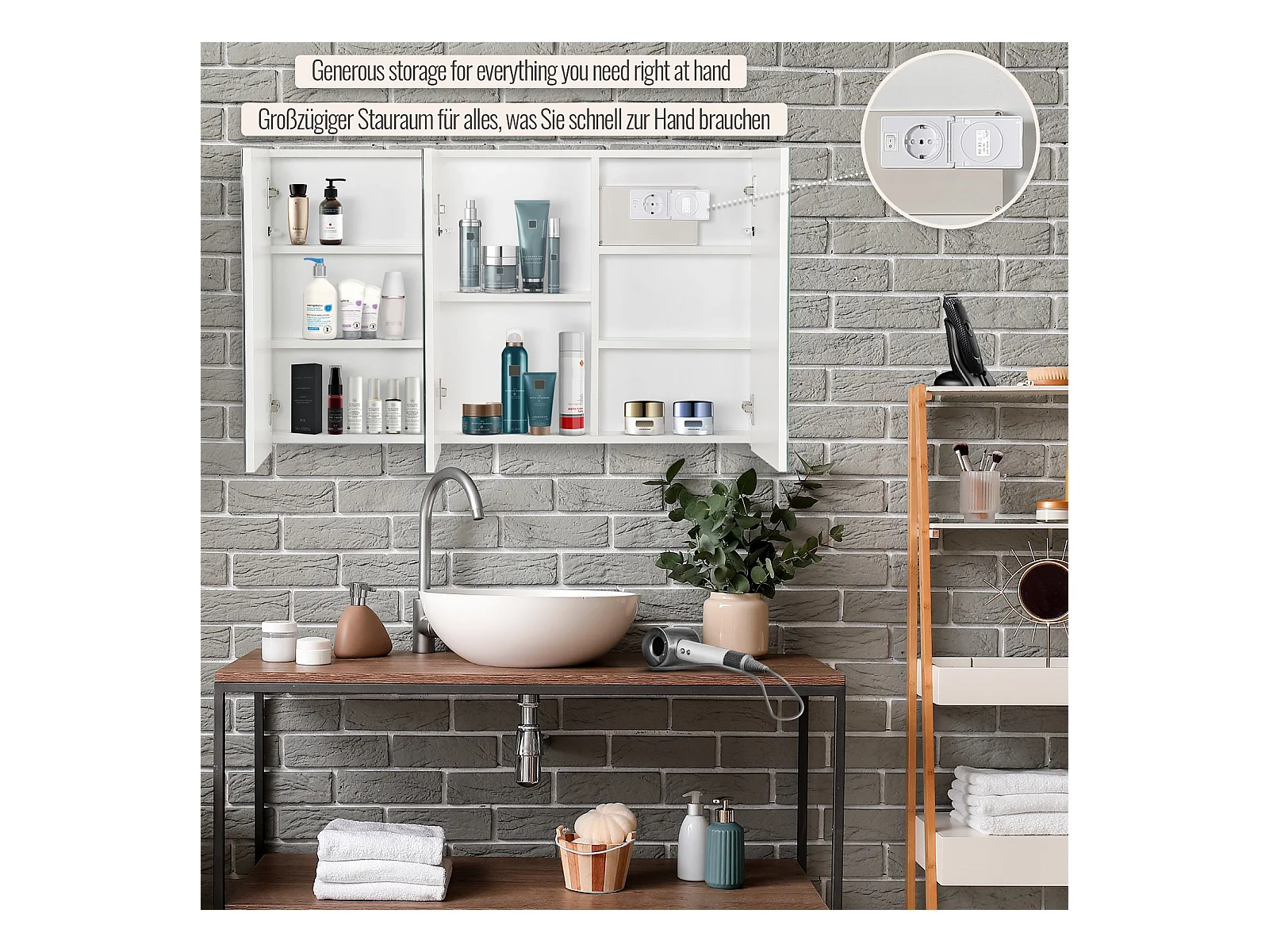 Armoire à miroir avec éclairage LED - 100x60x13 cm - armoire à pharmacie