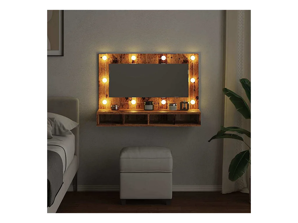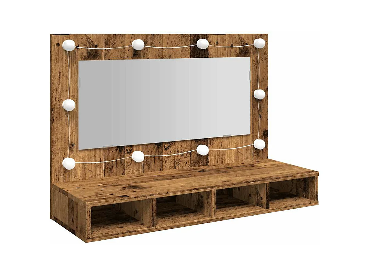 Armoire à miroir avec LED vieux bois 90x31,5x62 cm
