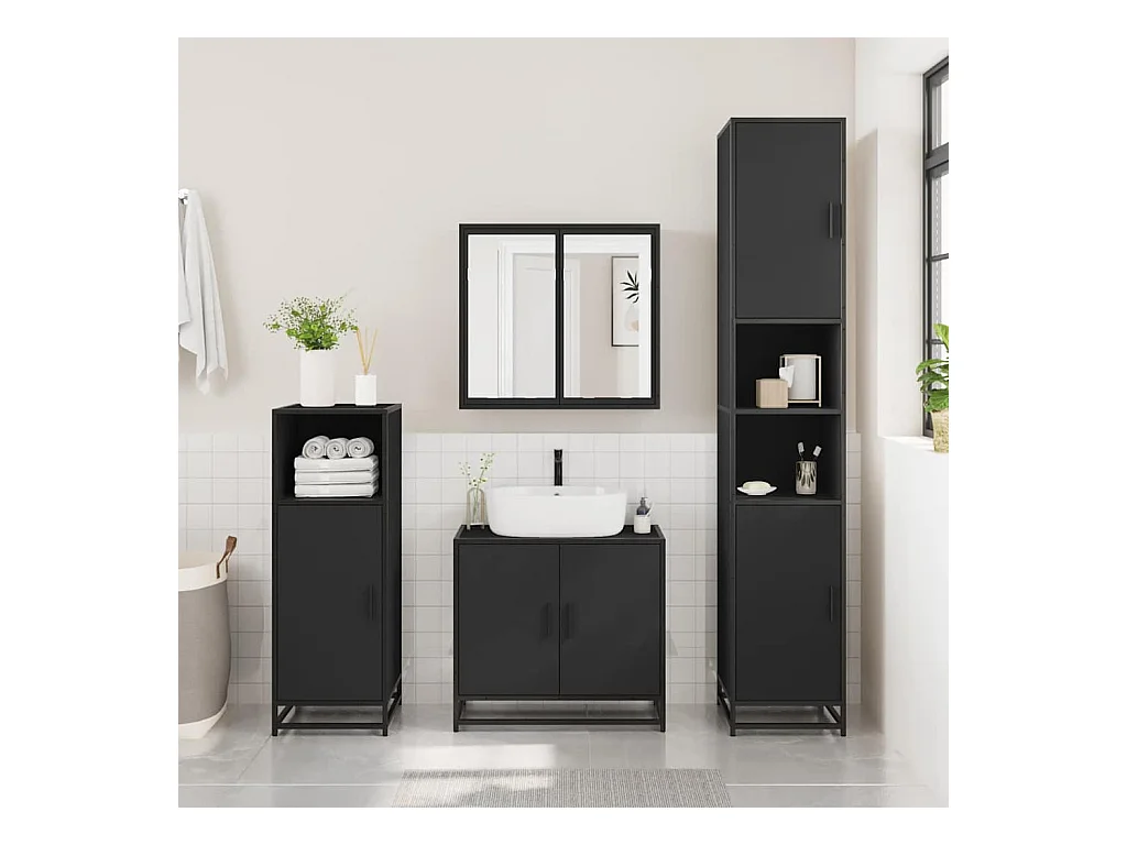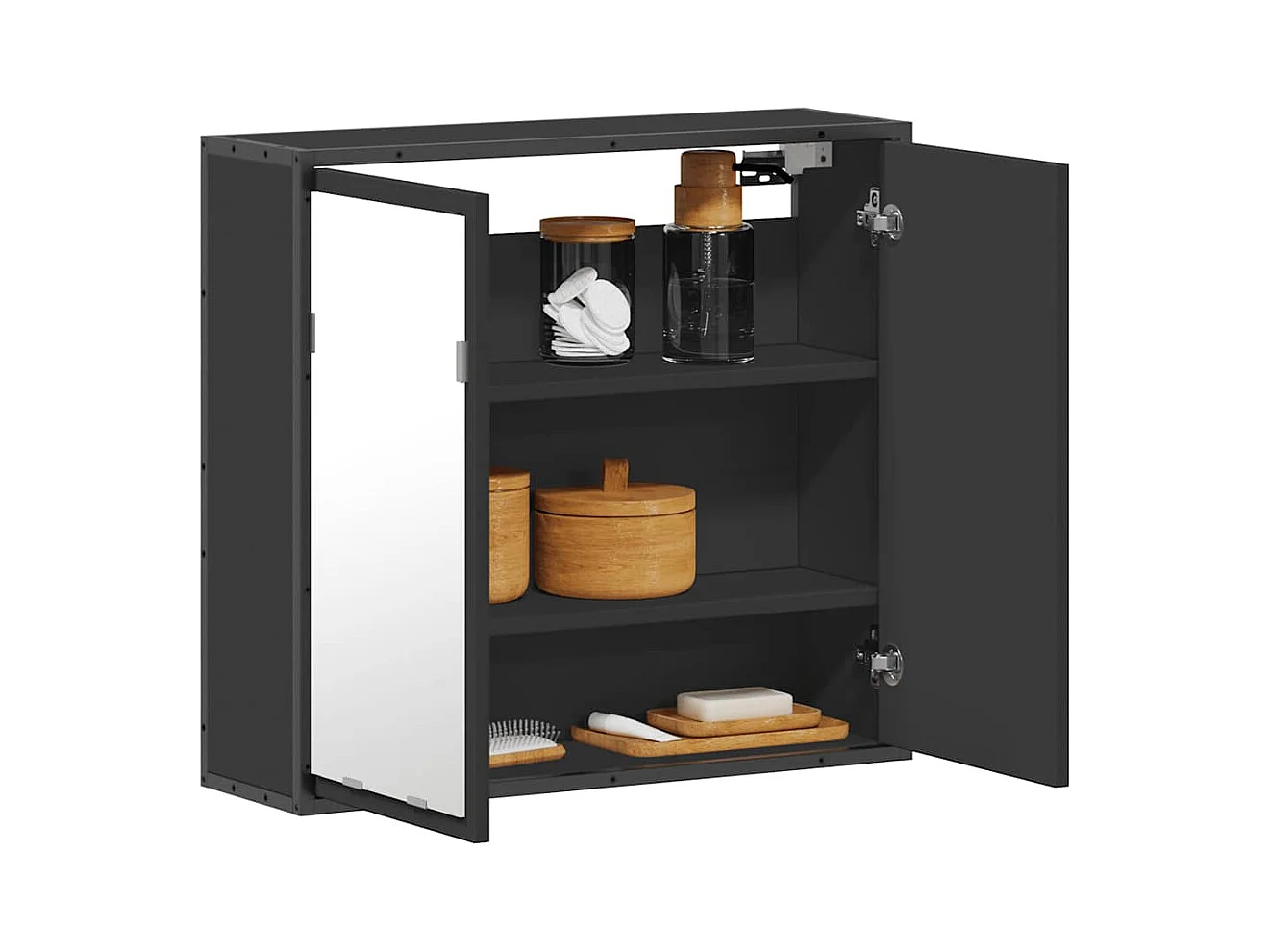 Armoire à miroir de salle de bain noir bois d’ingénierie