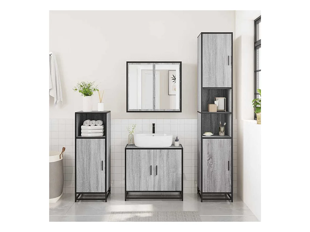 Armoire de salle de bain Gris béton Bois d'ingénierie