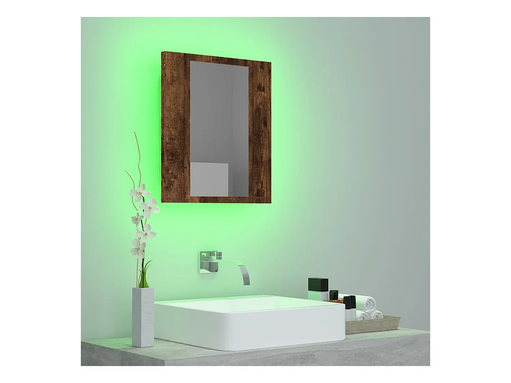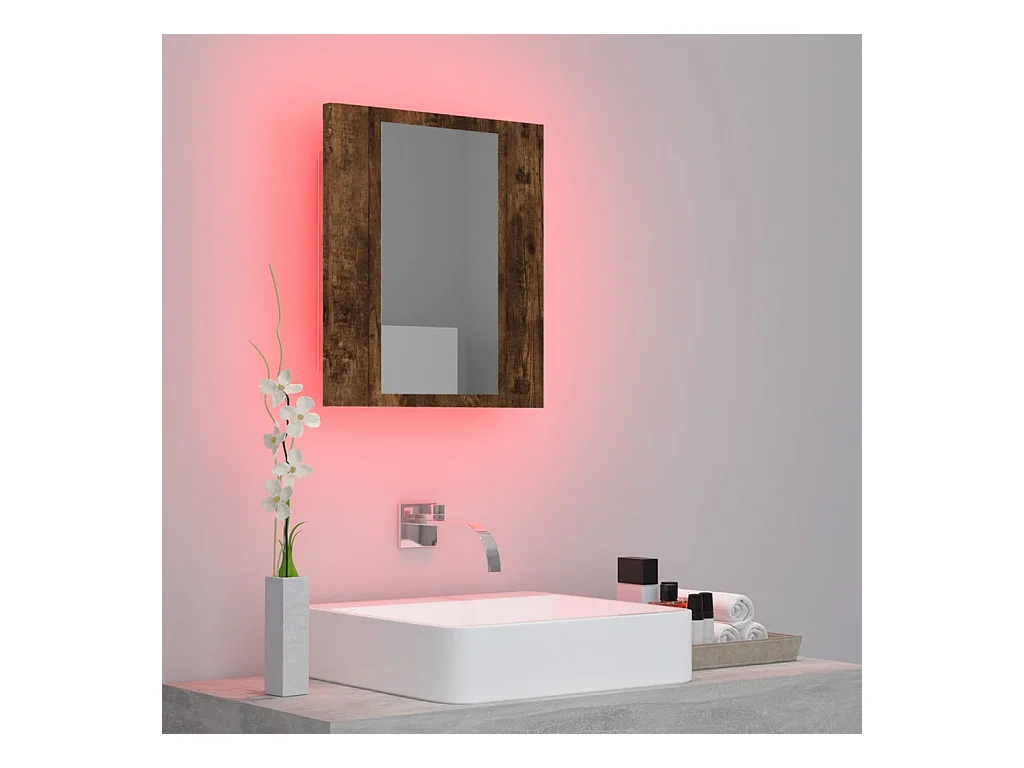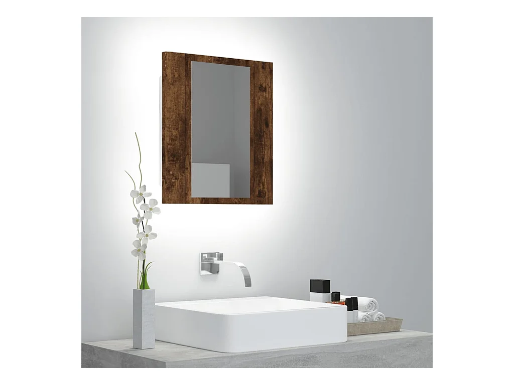 Armoire à miroir à LED de bain chêne fumé 80x12x45 cm acrylique FR55330