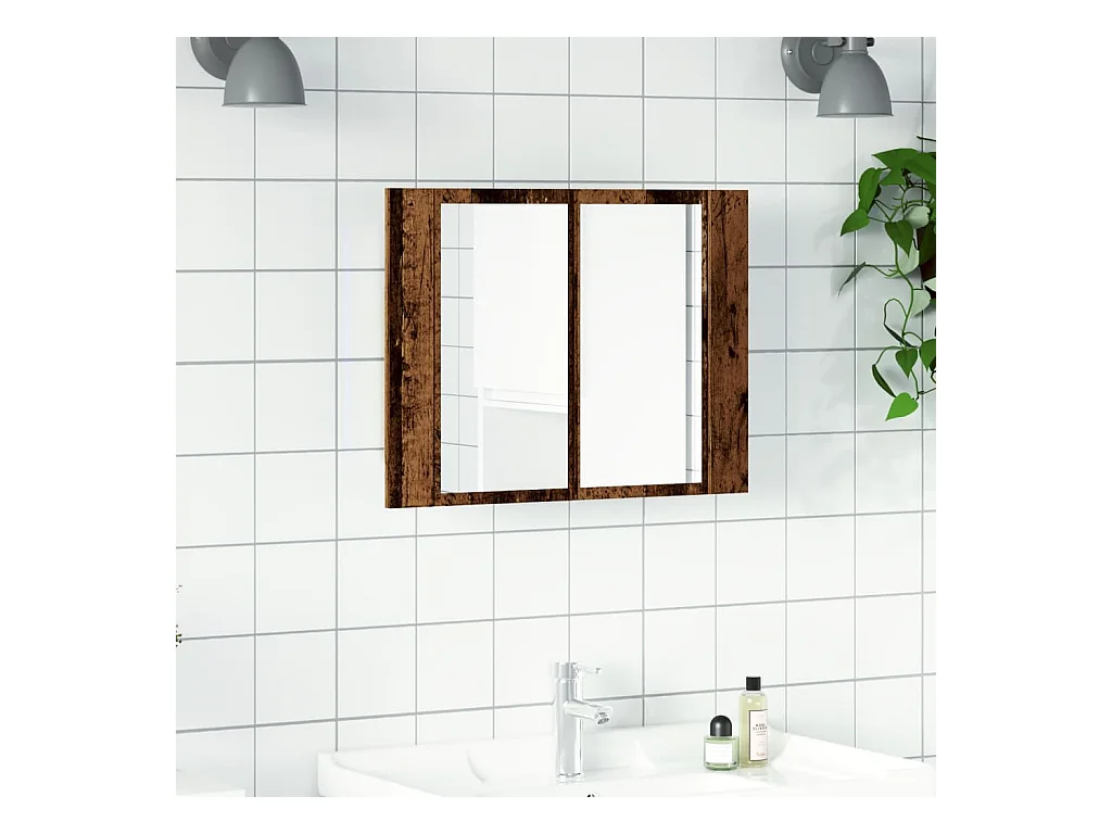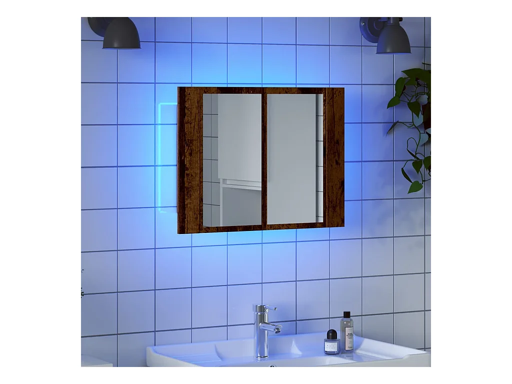 Armoire à miroir à LED de bain chêne fumé 80x12x45 cm acrylique FR55330