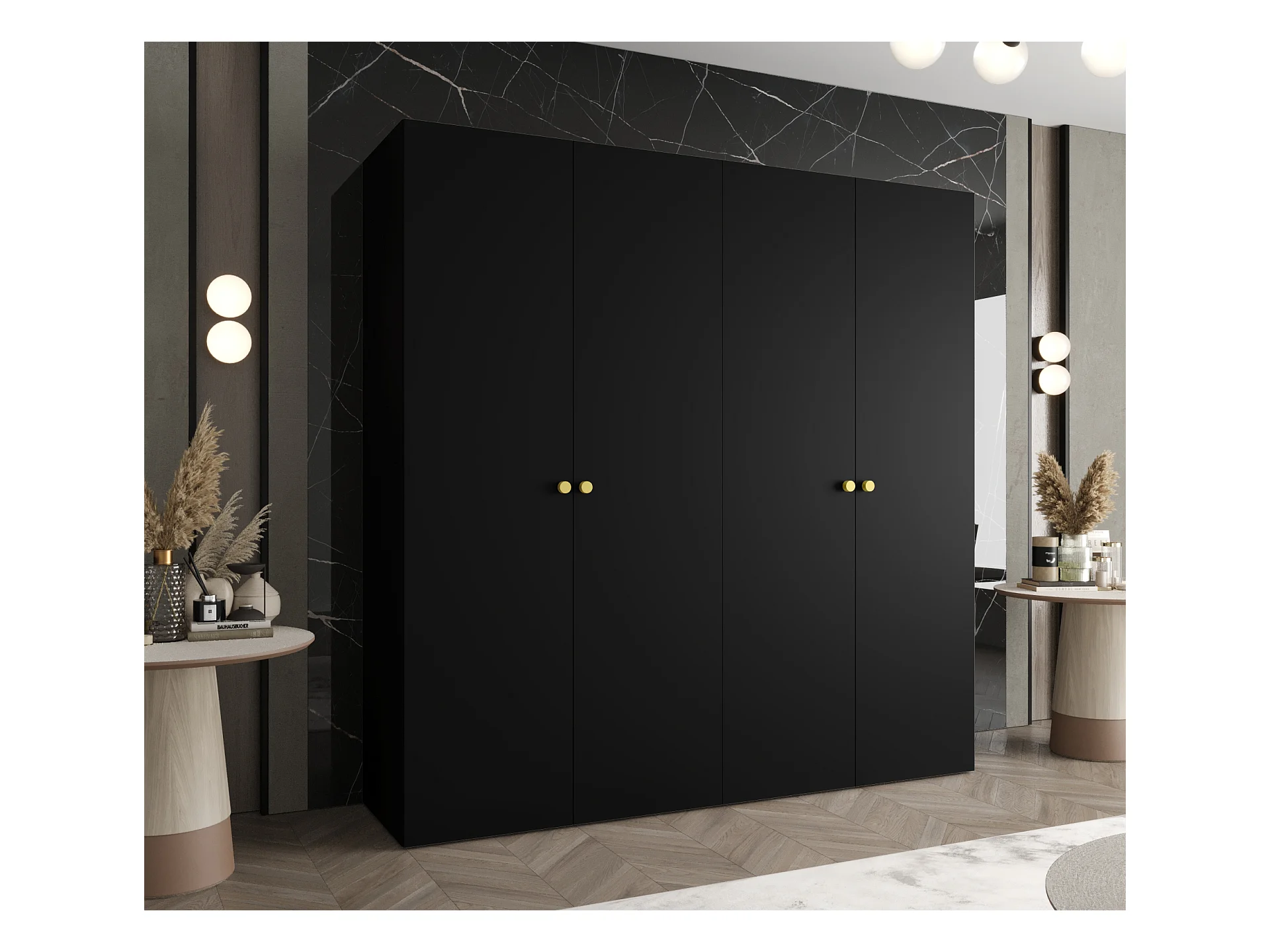 Armoire à portes battantes Parma 1 202/200/52 4 portes (Noir)