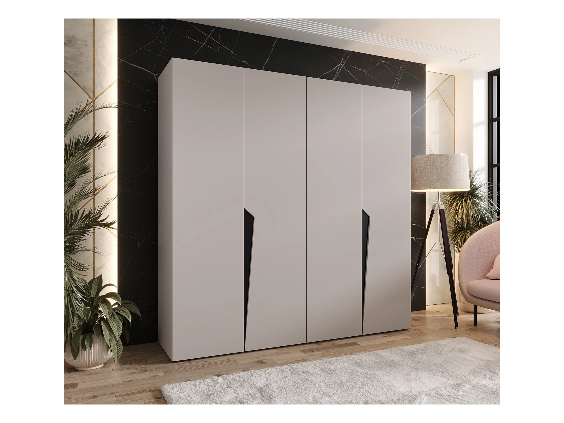 Armoire à portes battantes Piano 1 150 / 202 / 52 (Cachemire + poignées: Noir)