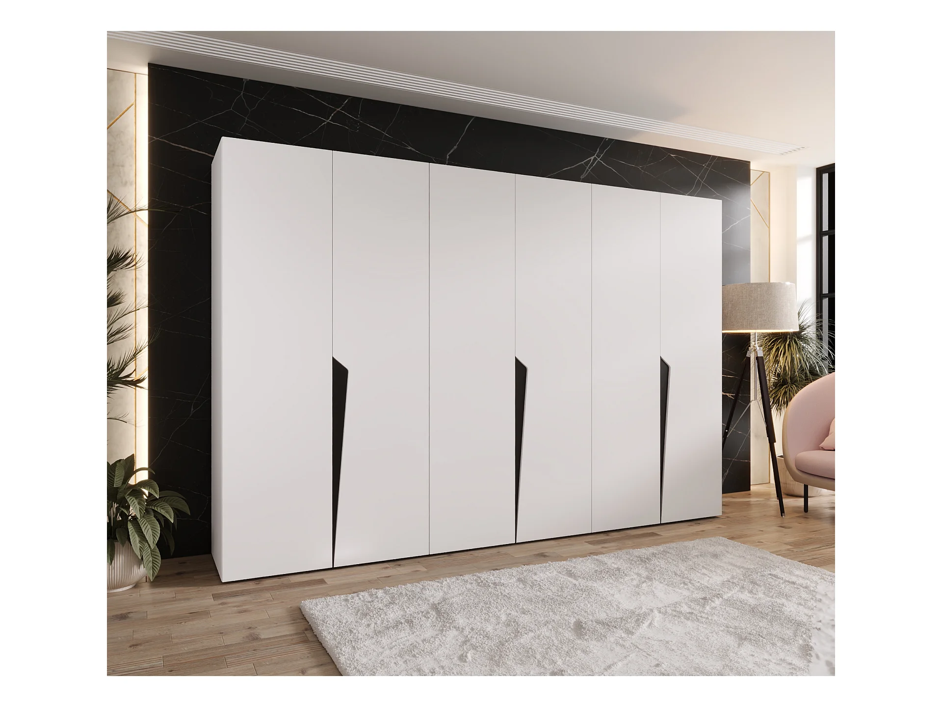 Armoire à portes battantes Piano 1 300 (150x2) / 202 / 52 (Blanc + poignées: Noir)