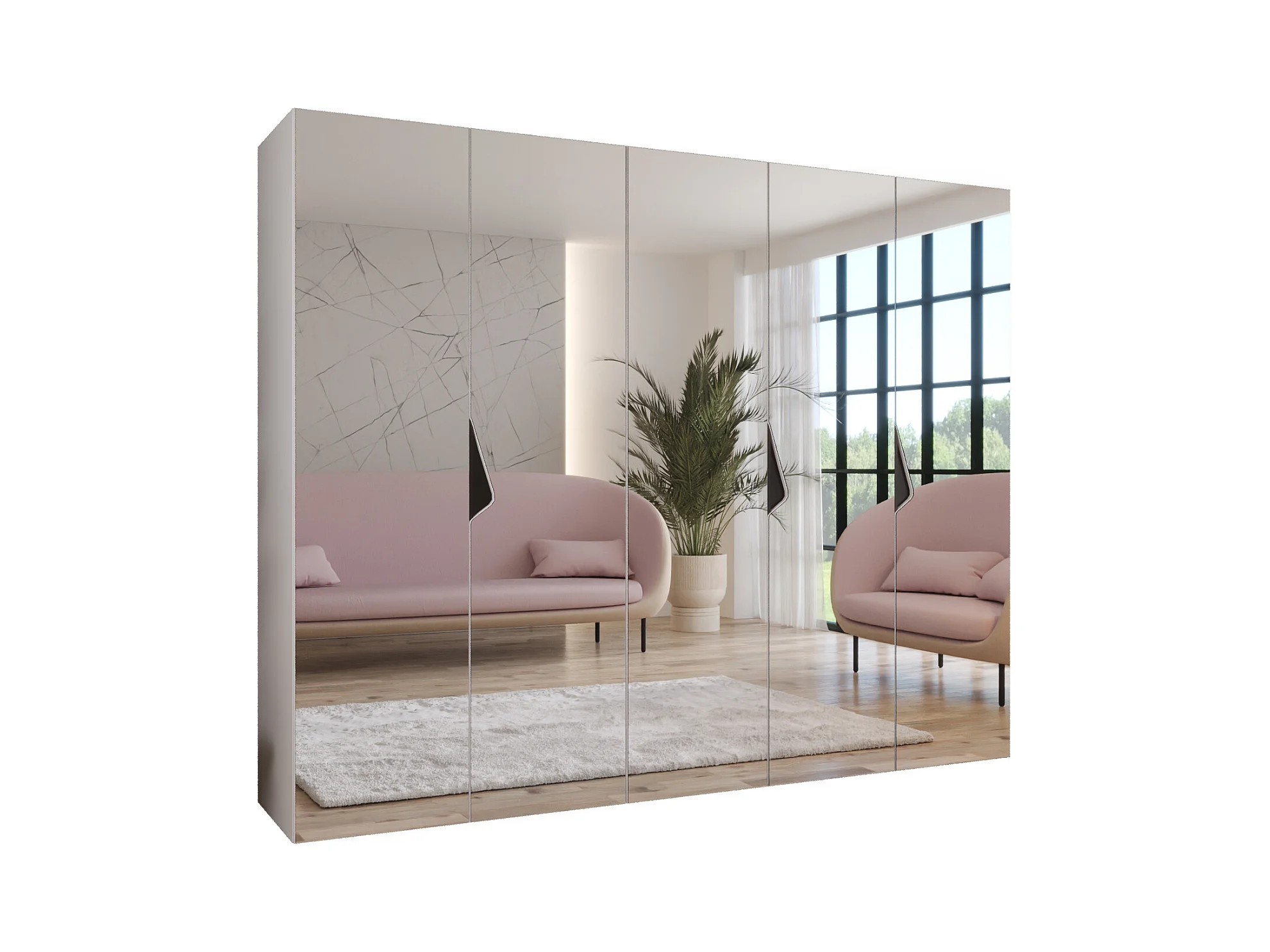 Armoire à portes battantes Sandi 2 250 / 202 / 52 (Blanc + poignées: Noir)
