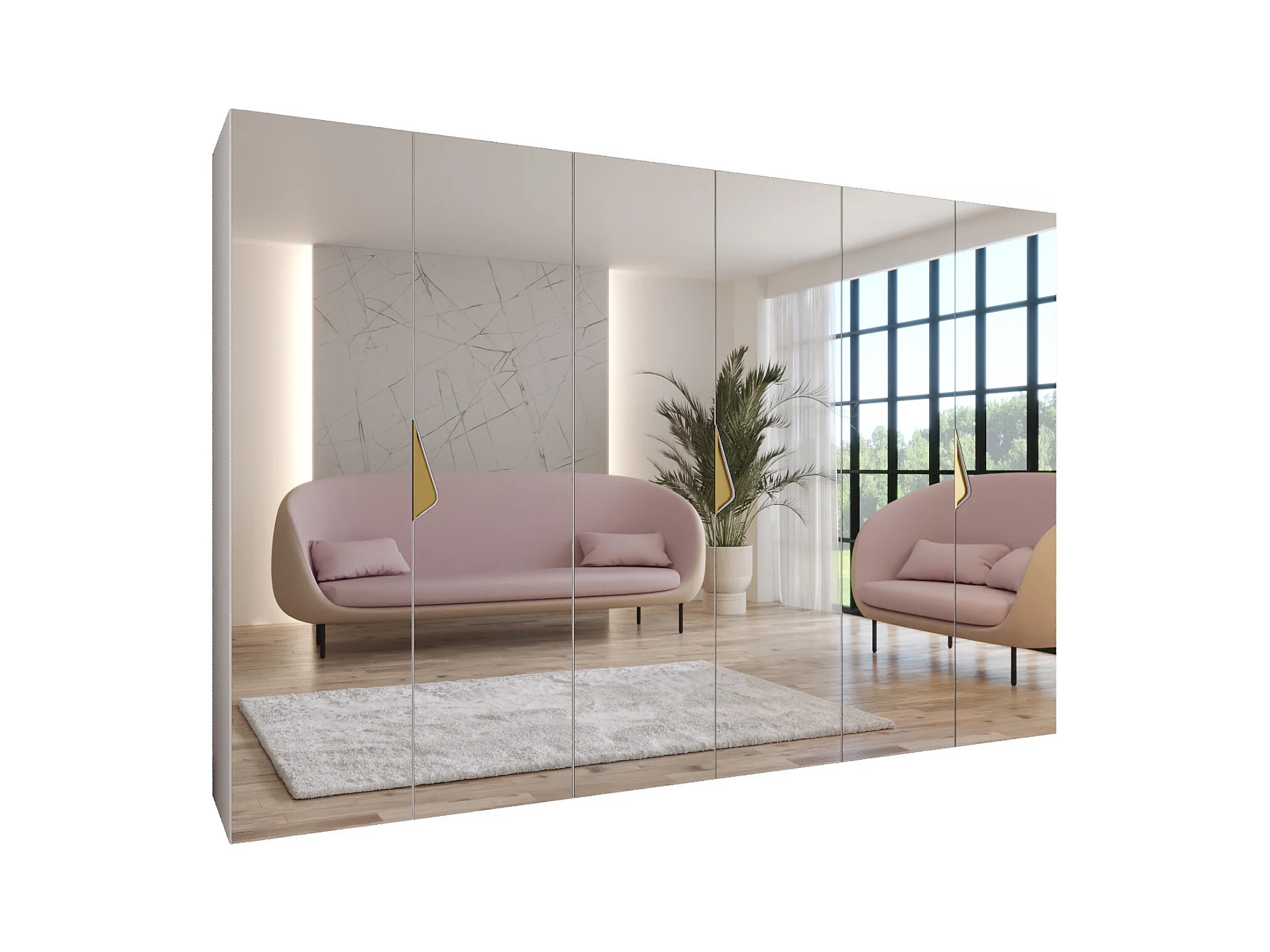 Armoire à portes battantes Sandi 3 300 (150x2) / 202 / 52 (Blanc + poignées: Gold)