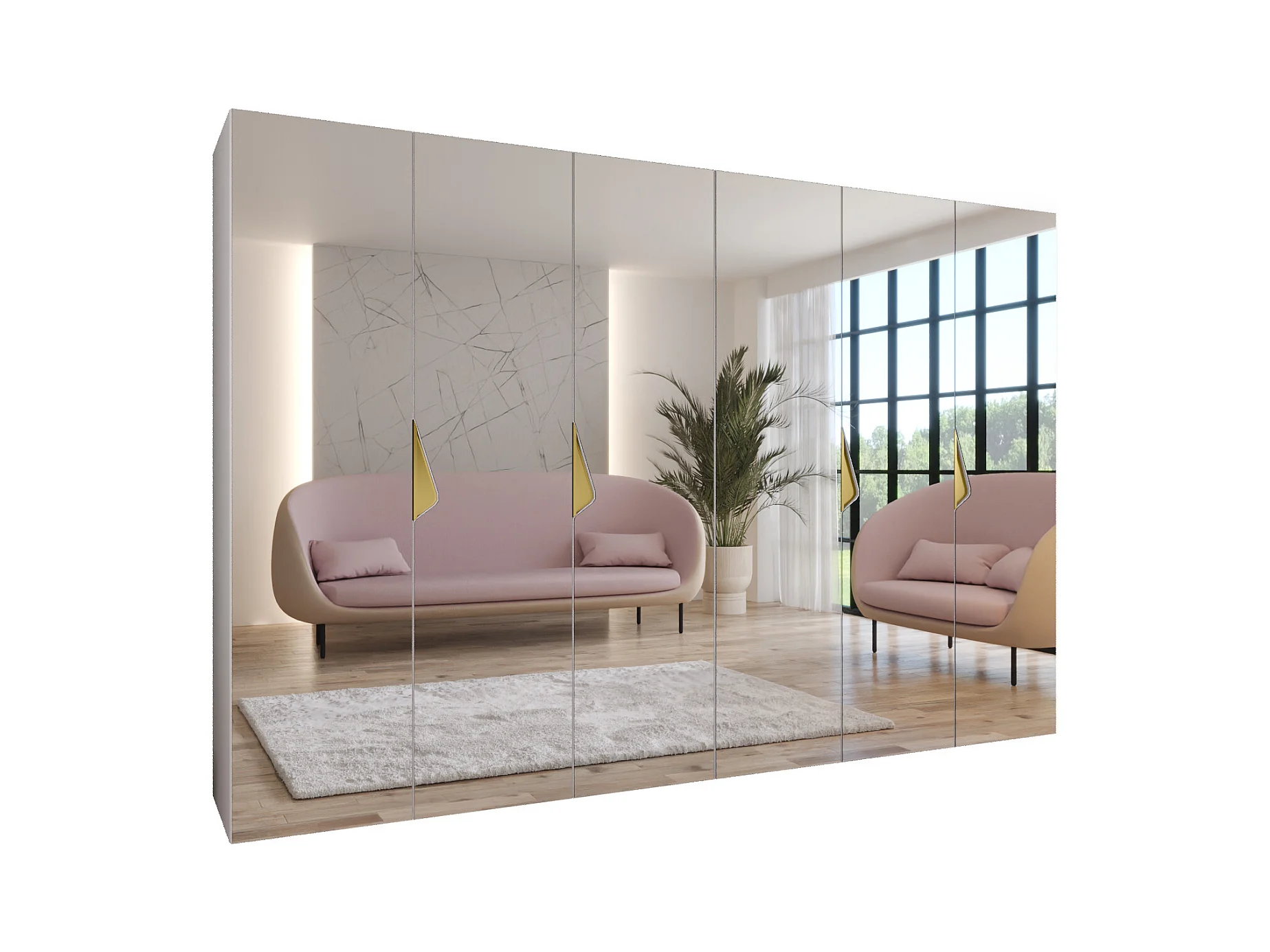 Armoire à portes battantes Sandi 3 300 (150x2) / 202 / 52 (Blanc + poignées: Gold)